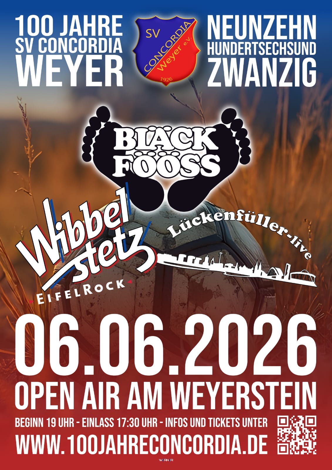 Am 06. Juni 2026 steigt das große Open Air am Weyerstein – mit den legendären Bläck Fööss, der EifelRock-Band Wibbelstetz und den großartigen Lückenfüller-live! 🎶🔥