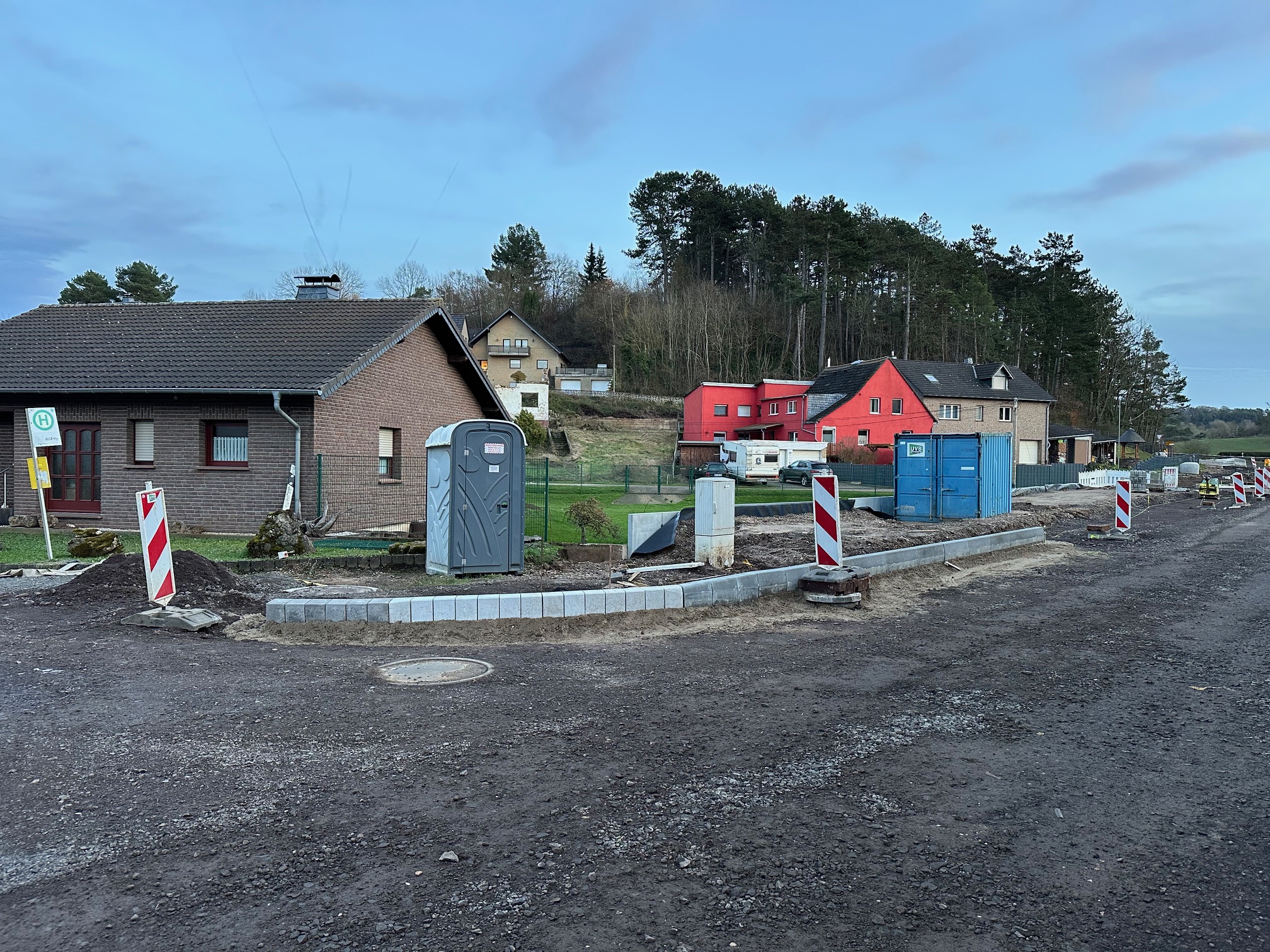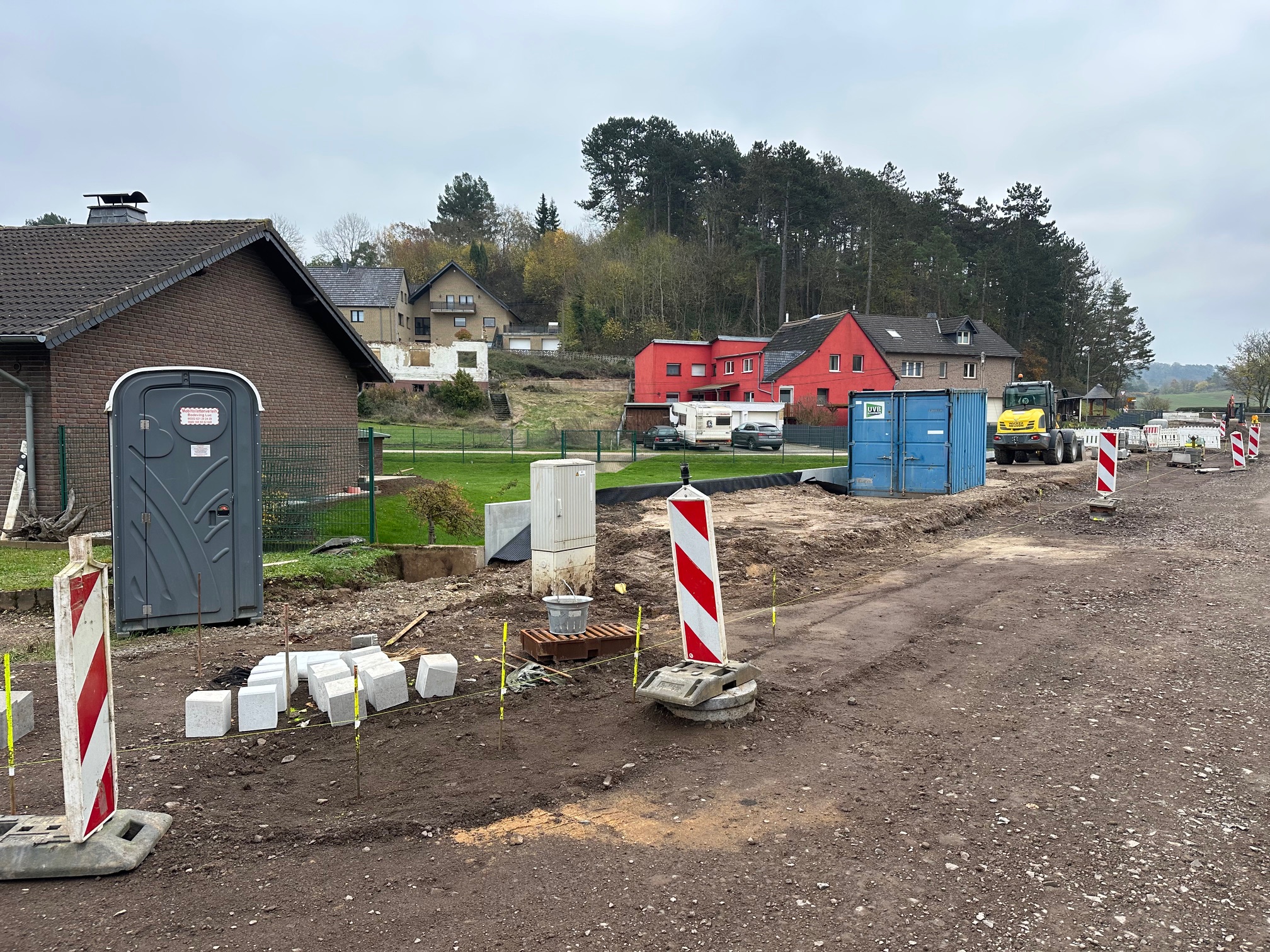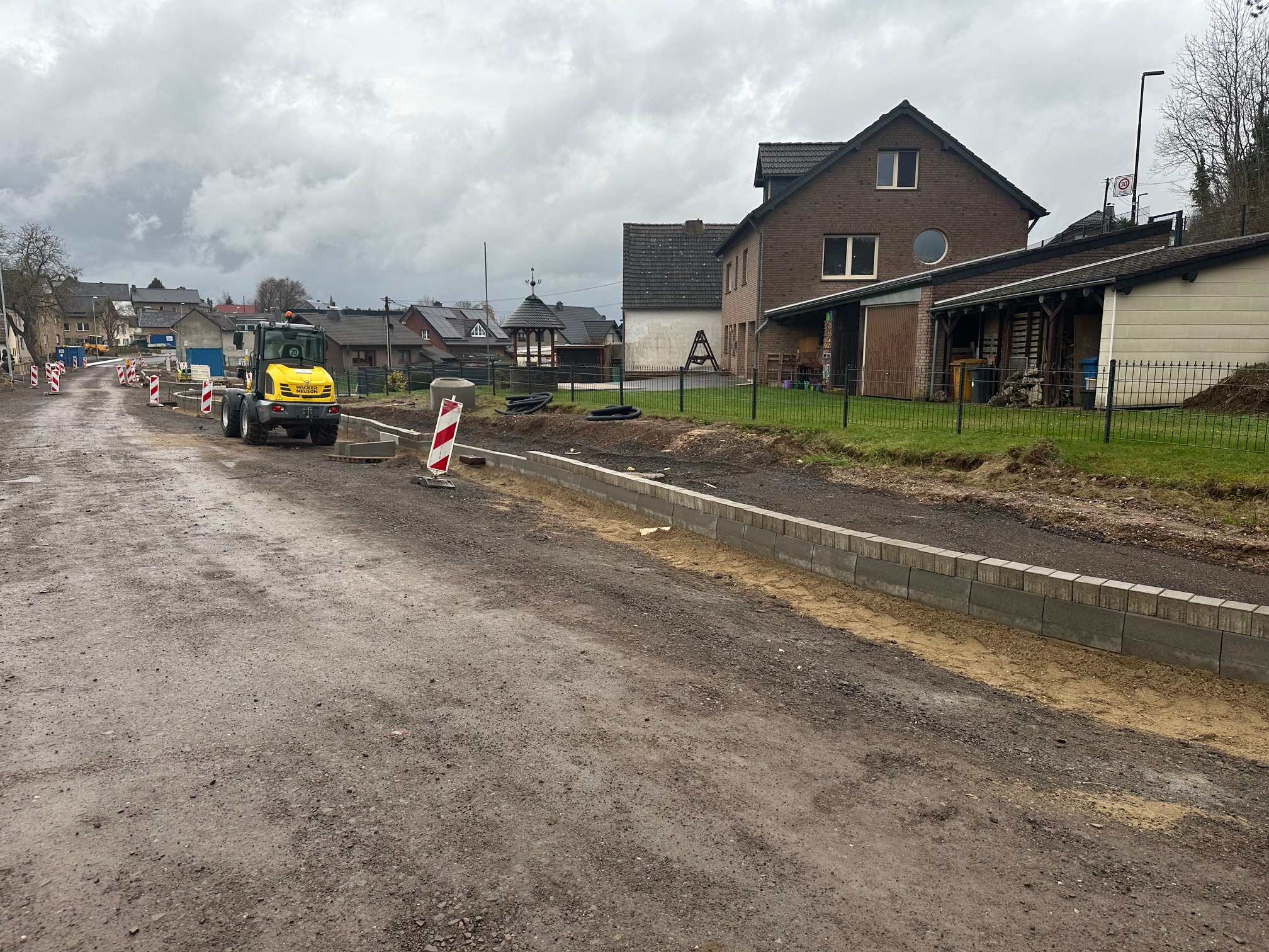 Die Arbeiten am letzten Bauabschnitt der Hauptstraße in Weyer schreiten zügig voran. Am Ortseingang aus Richtung Zingsheim zeigt sich aktuell reger Betrieb, wo die Straßeneinfassungen mit Hochdruck vorangetrieben werden. Dabei wird es tagsüber schon mal etwas eng, doch die Fortschritte sind unübersehbar.