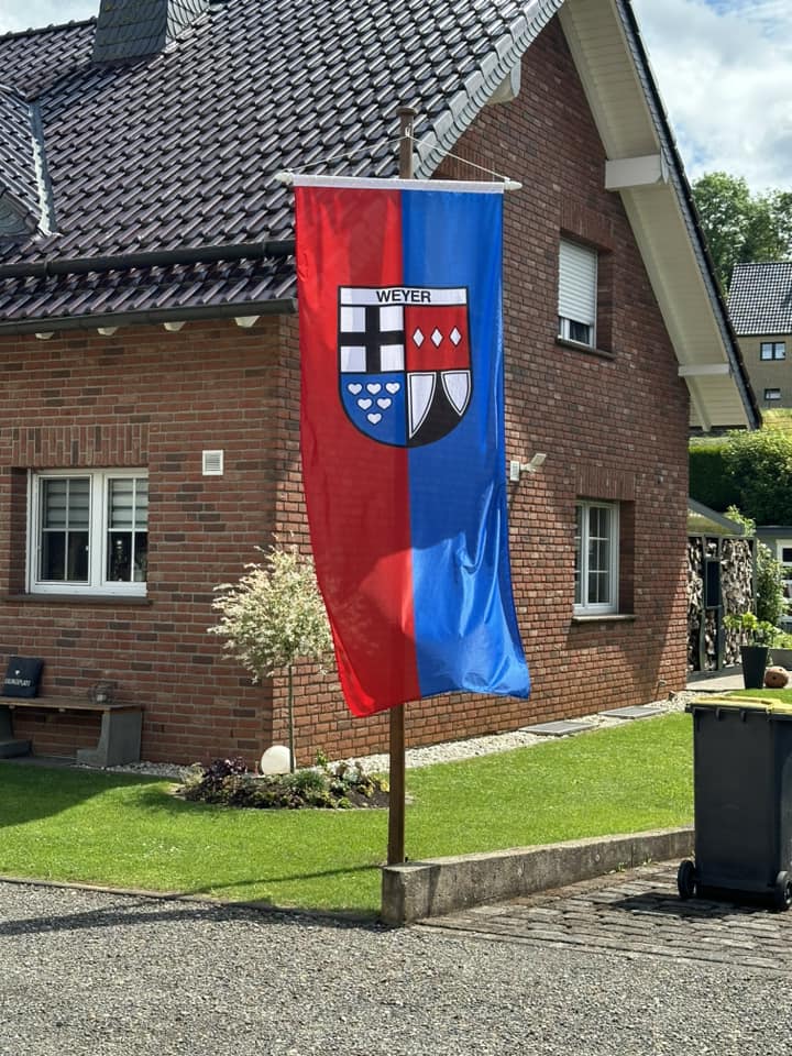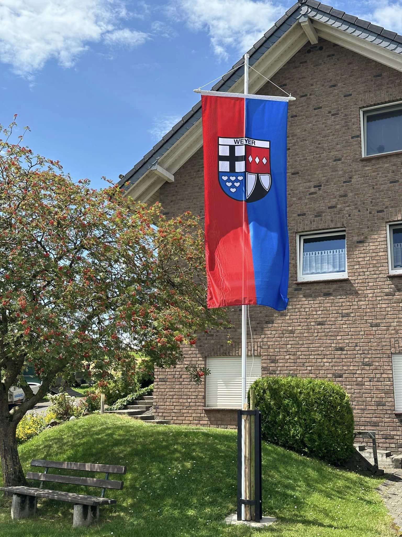 Wer noch keine Weyer-Fahne hat, kann diese auch heute noch beim Vereinskartell erwerben. Einige der größeren Fahnen sind noch verfügbar. Sollten Sie eine der kleineren Fahnen besitzen und lieber eine größere haben wollen, ist auch ein Tausch möglich, denn einige Mitbürger warten darauf, dass auch die kleineren Modelle wieder angeboten werden. Der Preis für große wie kleine Fahnen beträgt 50 Euro. Sprechen Sie uns einfach an.