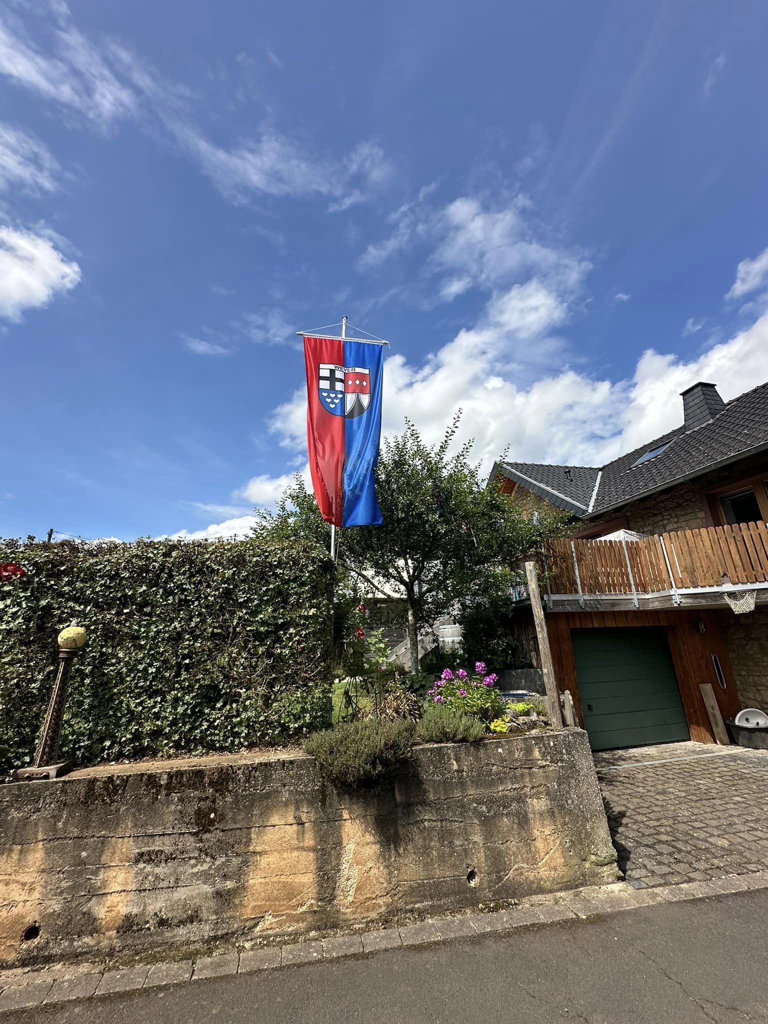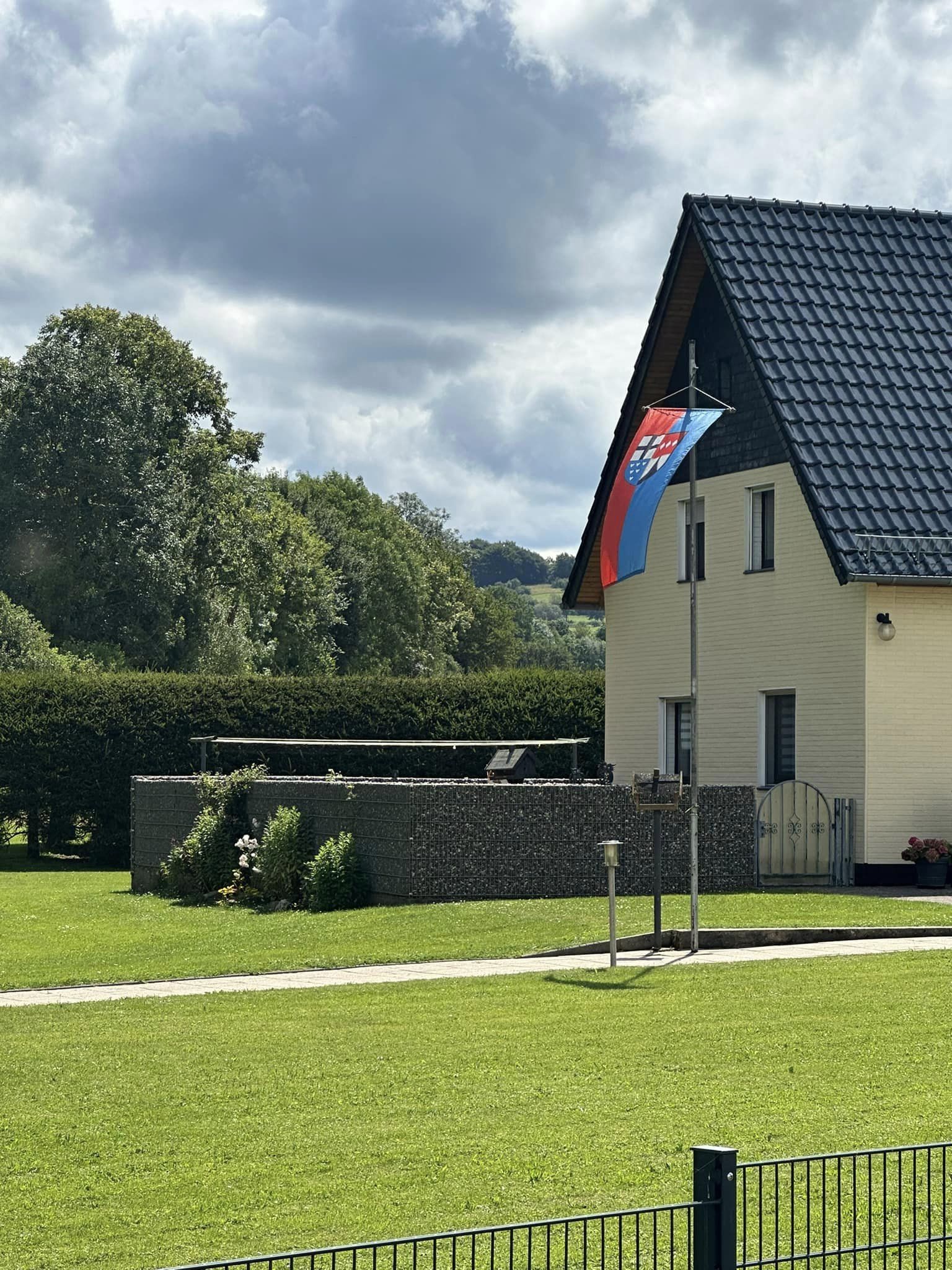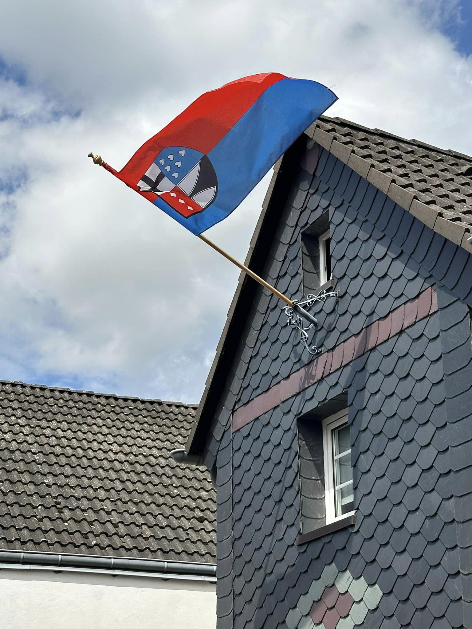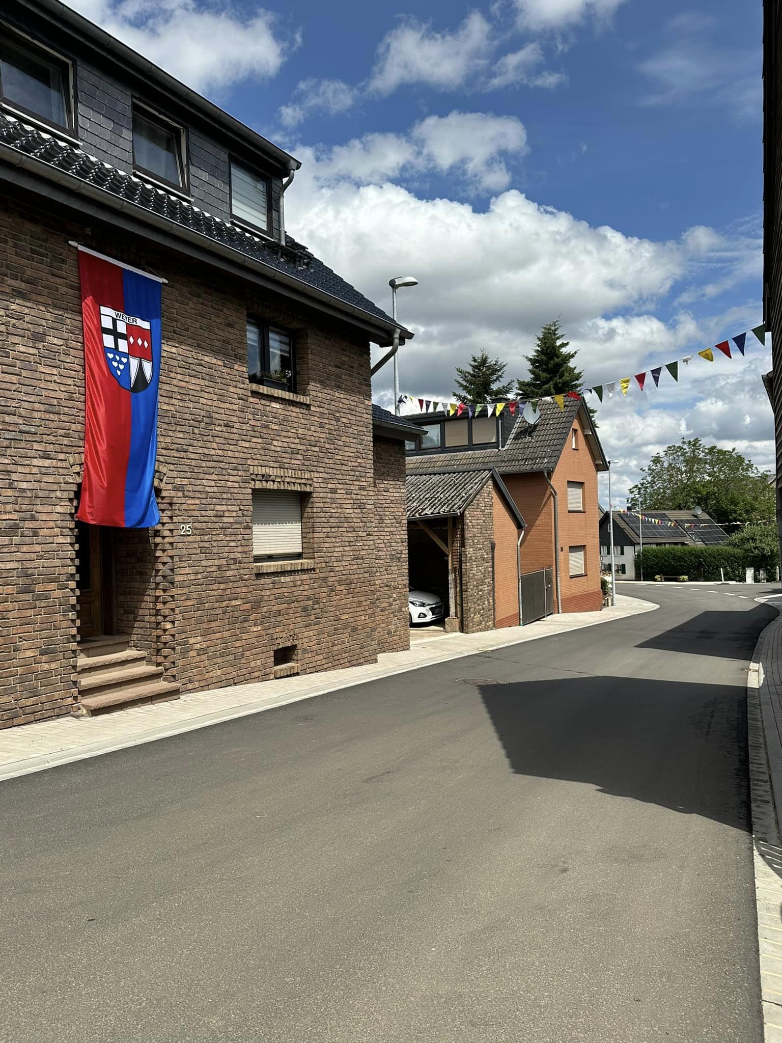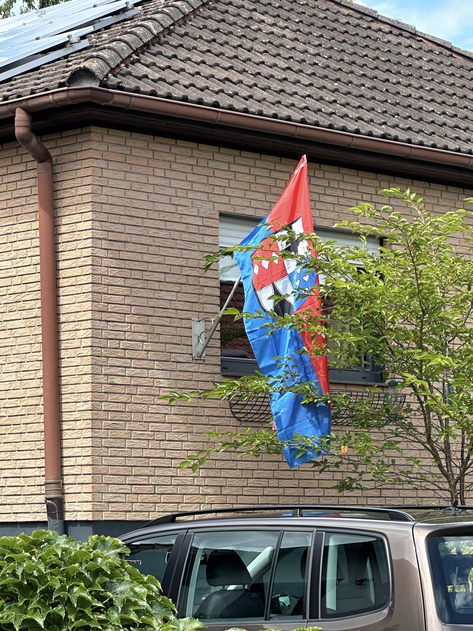 Vor kurzem riefen wir unsere Mitbürger dazu auf, zur Kirmes die Fahnen zu hissen, und das Dorf folgte begeistert. Überall wehten am gestrigen Tag die Dorffarben im Wind – große und kleine Fahnen, an Masten, Häuserwänden und sogar in den Bäumen. So wurde die tiefe Verbundenheit der Dorfbewohner deutlich sichtbar.