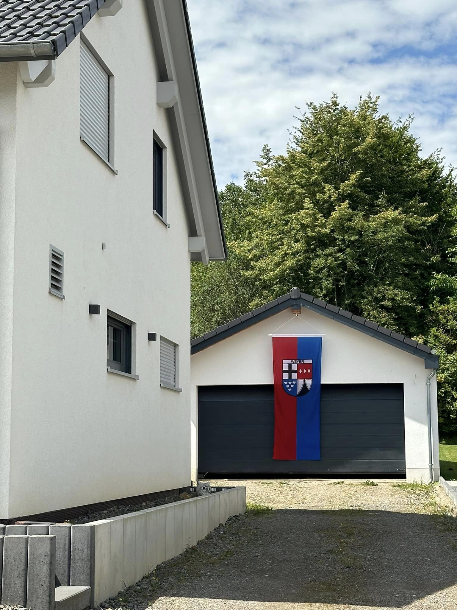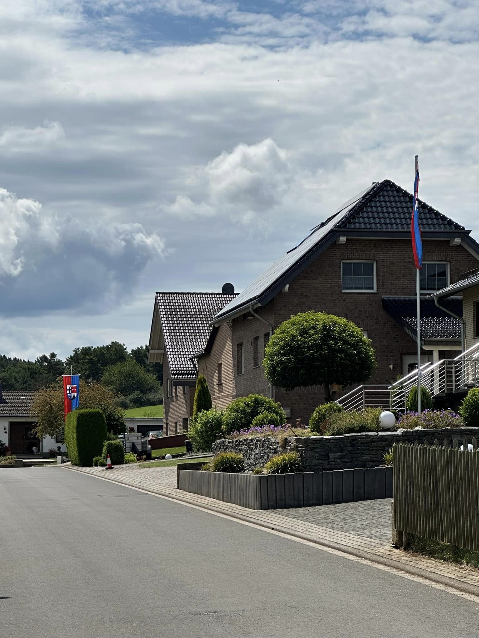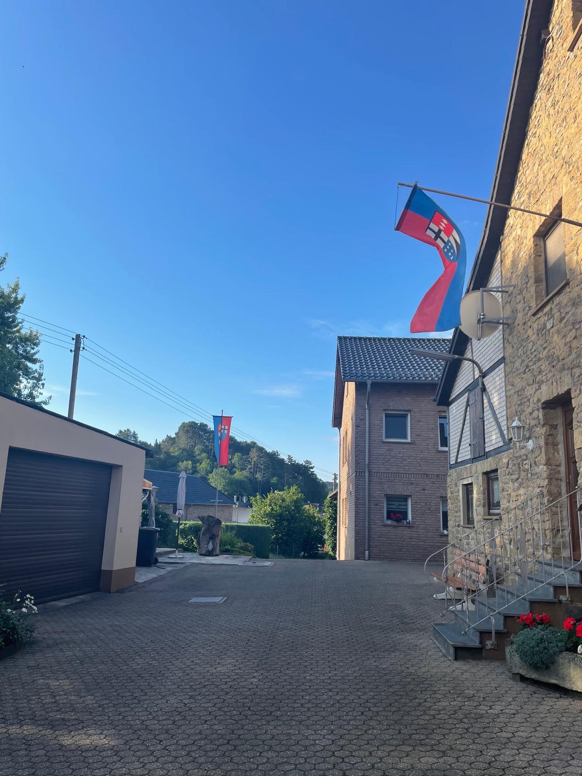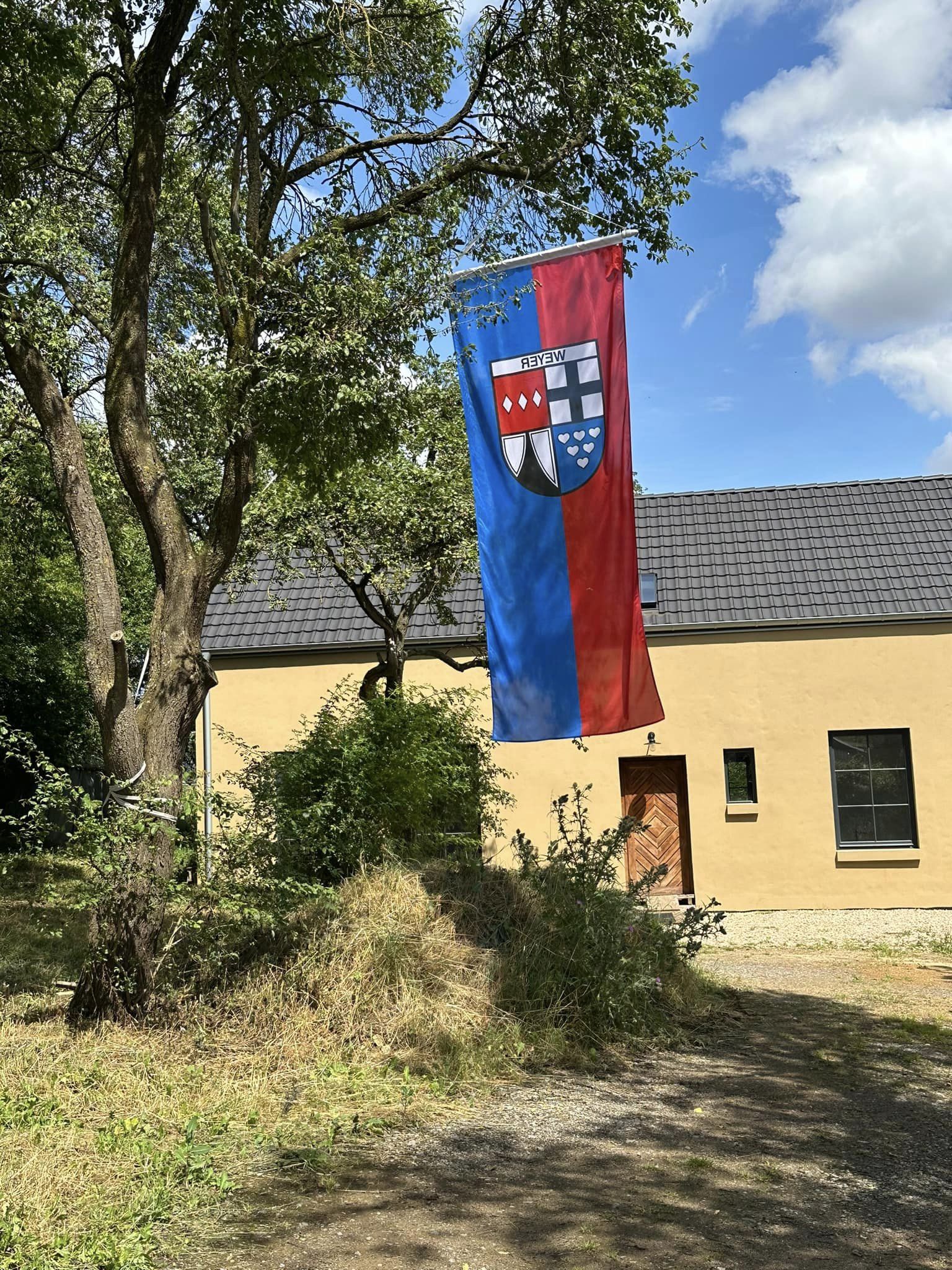 Vor kurzem riefen wir unsere Mitbürger dazu auf, zur Kirmes die Fahnen zu hissen, und das Dorf folgte begeistert. Überall wehten am gestrigen Tag die Dorffarben im Wind – große und kleine Fahnen, an Masten, Häuserwänden und sogar in den Bäumen. So wurde die tiefe Verbundenheit der Dorfbewohner deutlich sichtbar.