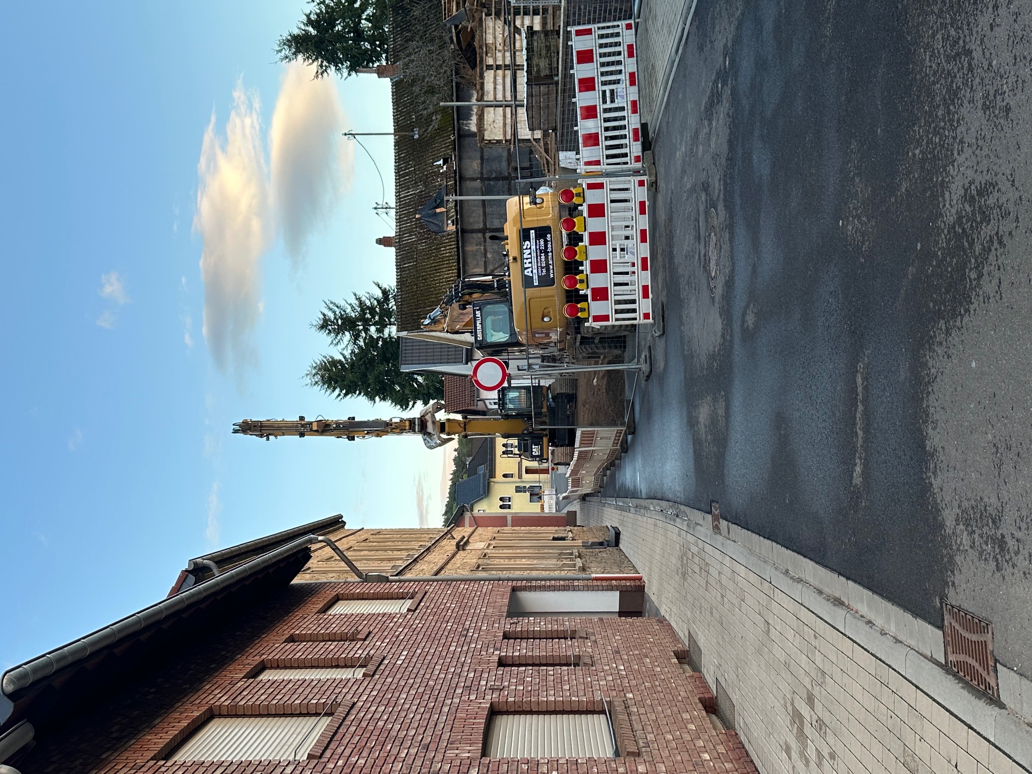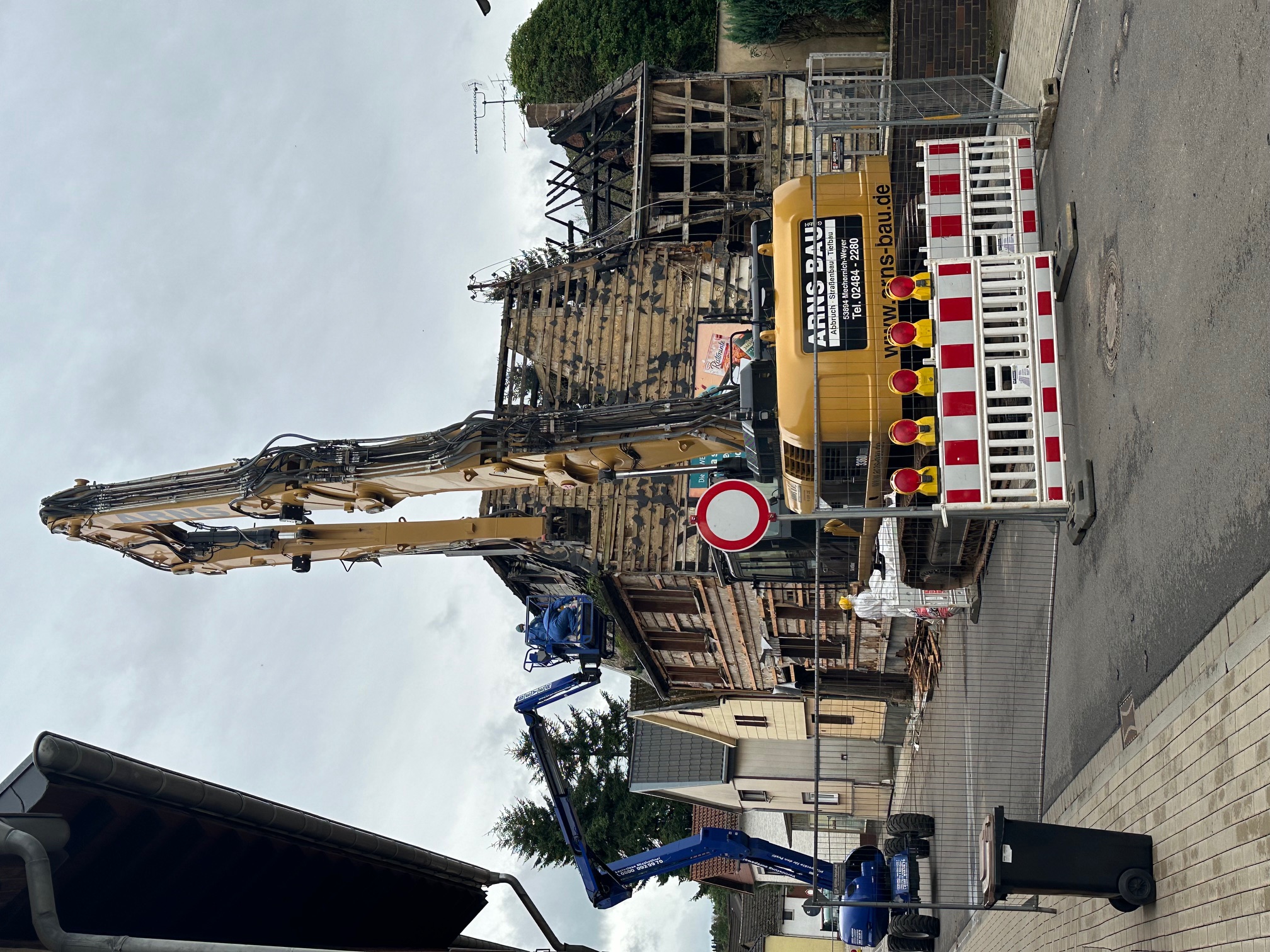 Ab Donnerstag, dem 26.09.2024, wird die Hauptstraße zwischen der Kreuzung Glockenkreuz/Kirchenweg und der Kreuzung Jülicherend aufgrund von Abrissarbeiten vorübergehend gesperrt. Diese Maßnahme ist notwendig, da ein Fachwerkhaus, das durch einen Brand schwer beschädigt wurde, abgerissen werden muss.