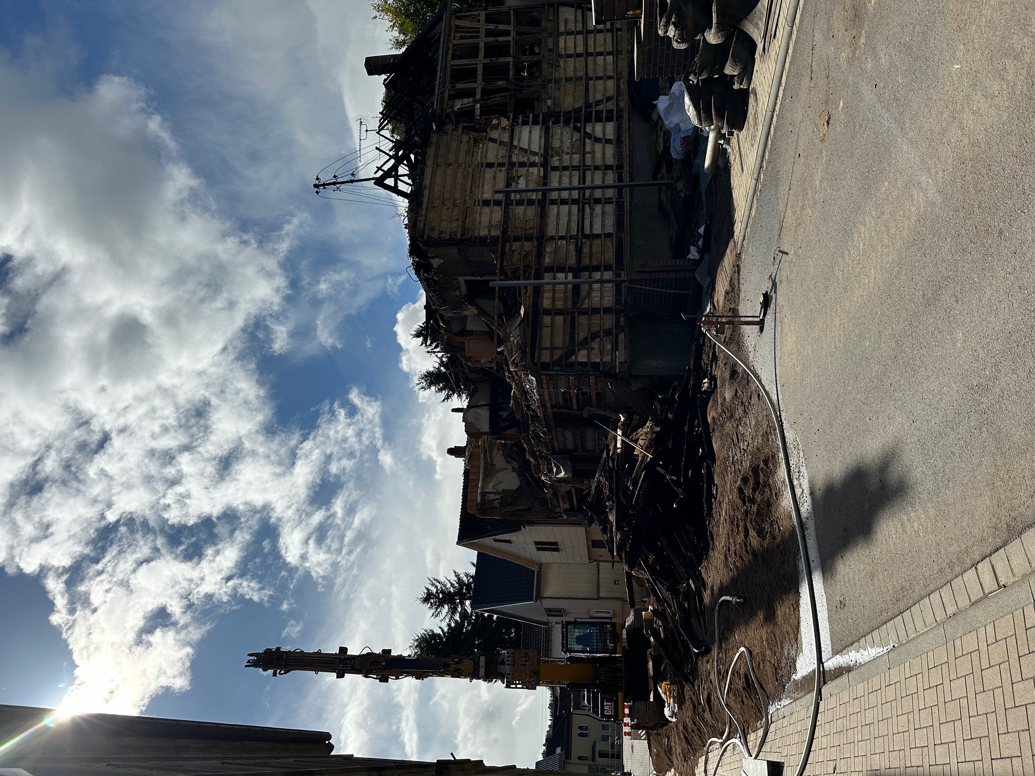 In der folgenden Woche wurden die Reste des Hauses abtransportiert und in BigPacks verpackt, sodass die Hauptstraße pünktlich zum Tag der Deutschen Einheit für Fußgänger wieder passierbar war. Die vollständige Räumung der Baustelle erfolgt voraussichtlich am Freitag nach dem Feiertag, sodass die Straße am darauffolgenden Wochenende wieder zweispurig befahrbar sein wird.