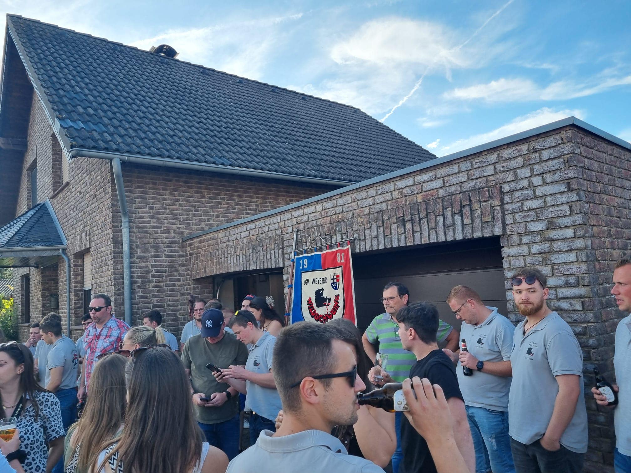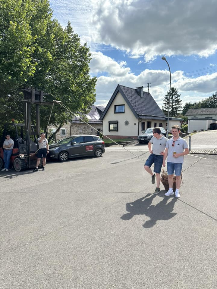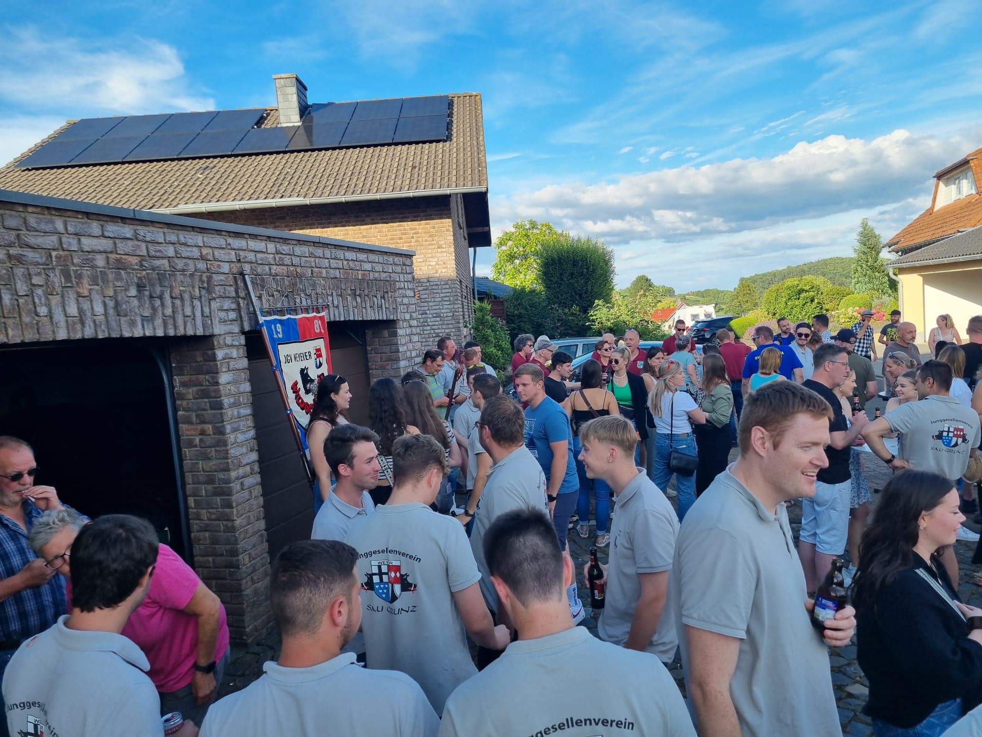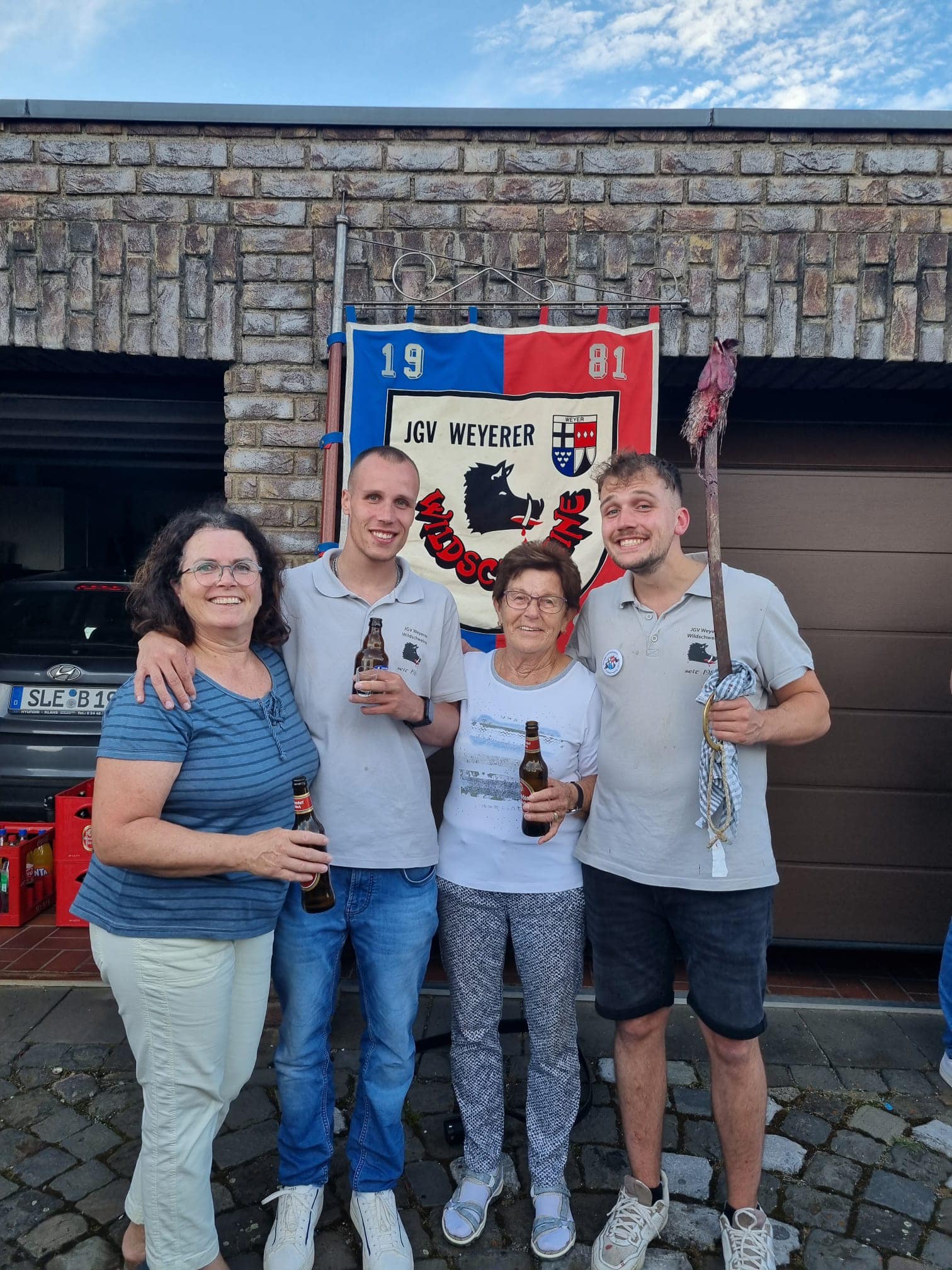 Der Nachmittag lockte bei tollem Wetter immer wieder neue Gäste an. Die Kinder hatten viel Spaß an den vielen Spielestationen, die überall aufgebaut waren. Die Zeit verging wie im Flug, bis der frühe Abend nahte und der Junggesellenverein Weyerer Wildschweine sich aufstellte, um das traditionelle Hahnenköppen durchzuführen und ihren Hahnenkönig 2024 zu bestimmen. Der Platz vor der Bürgerhalle füllte sich rasch mit Besuchern, die gespannt auf den Beginn des Spektakels warteten.