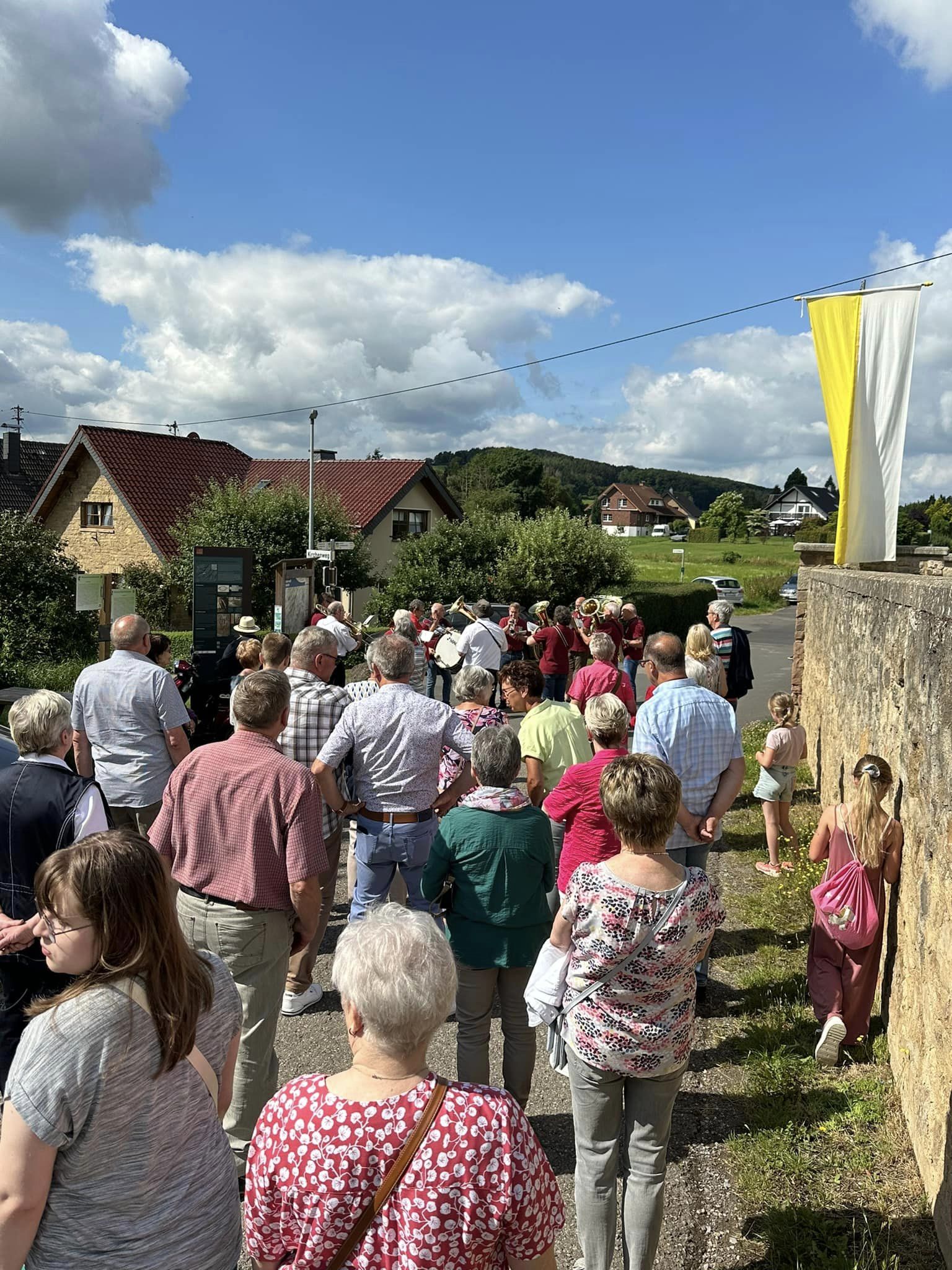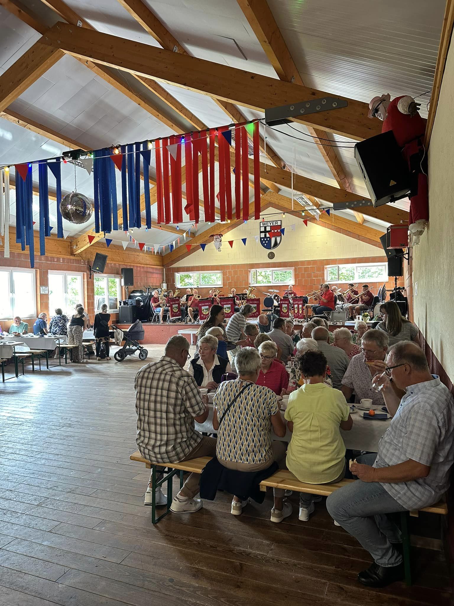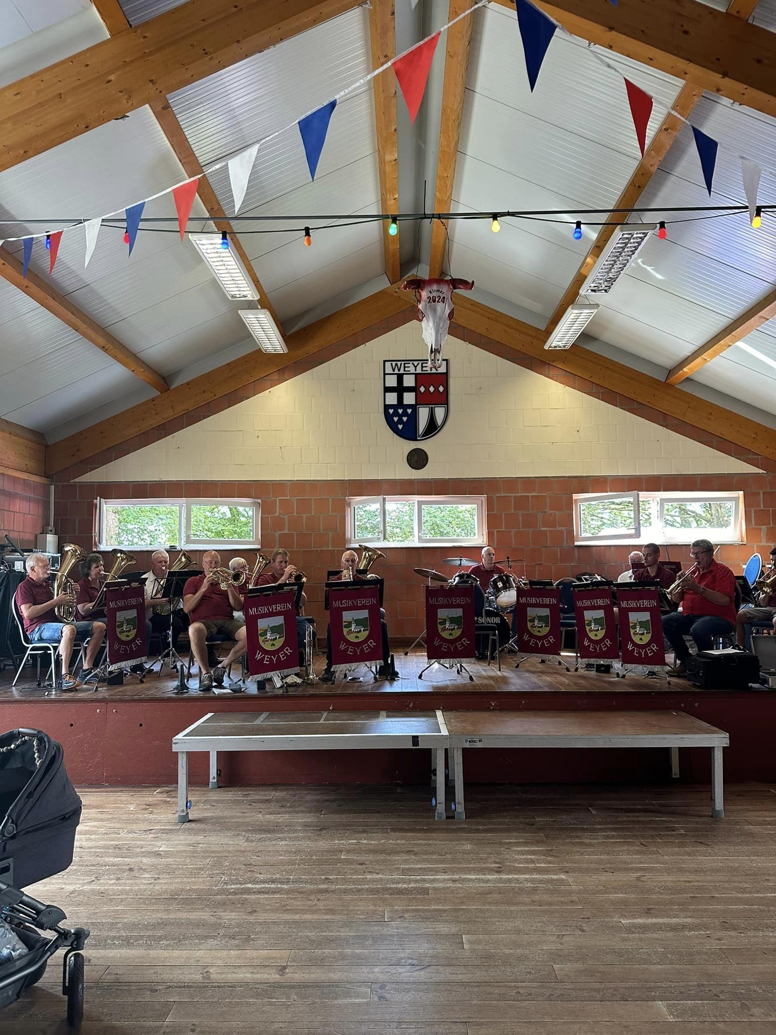 Der letzte Tag der Weyerer Kirmes 2024 begann gestern um 10 Uhr mit einer heiligen Messe und einem anschließenden Gang zum Friedhof, um der Verstorbenen zu gedenken. Von dort aus zog die Festgesellschaft zum Bürgerhaus, wo die Gäste sich mit einem reichhaltigen Frühstück für den Tag stärken konnten. Der Musikverein „Harmonie Weyer“ begleitete die Frühstücksgäste und unterhielt sie bis in den späten Mittag hinein.
