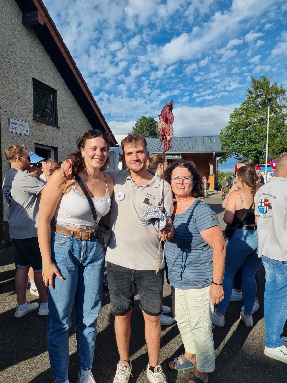 Nach einem langen und spannenden Duell wurden Manuel Mies und Finja Kreuel das Hahnenkönigspaar 2024 auf der Weyerer Kirmes. Ihr Sieg wurde von den zahlreichen Zuschauern mit großem Beifall gefeiert.