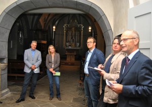 Mechernichs Bürgermeister Dr. Hans-Peter Schick begrüßte die Teilnehmer dazu nicht nur im „höchstgelegenen Ort des Mechernicher Stadtgebietes“, wie er betonte, sondern – mit Blick auf die spannende und von Legenden umrankte Geschichte der Kirche – auch an „einem interessanten Ort“. Das Für und Wider der Archäologietour sei heute kein Thema mehr, warf Schick einen Blick zurück. Vielmehr sei die Rundreise durch die Zeiten, die stets am ersten Sonntag im Oktober stattfindet, heute ein fester Termin im Veranstaltungskalender und zudem ein wichtiger Aspekt für den Tourismus, der „Konjunkturspritze für die Region“.