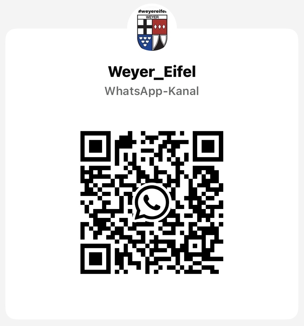 Alle Hinweise zu Parkregeln oder Sperrzeiten gibt es zusätzlich auch digital über unseren WhatsApp-Kanal „Weyer_Eifel“ – einfach abonnieren und bequem auf dem Laufenden bleiben.