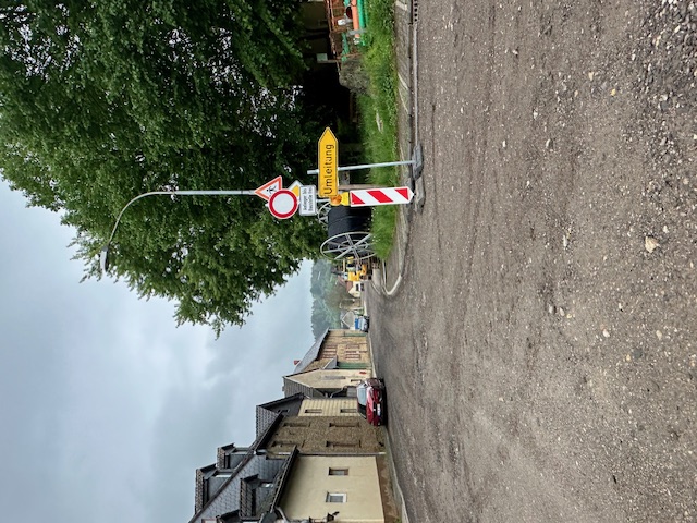 Wie viele von Ihnen bereits bemerkt haben, war am Freitag die Hauptstraße in Richtung Zingsheim teilweise gesperrt. Am Kreuzweg wurden Umleitungsschilder aufgestellt, die den Verkehr über den Kessel leiten. Die sonst selten befahrene Straße wurde für den Umleitungsverkehr vorbereitet. Wir möchten alle Verkehrsteilnehmer bitten, diese Strecke mit äußerster Vorsicht und angepasster Geschwindigkeit zu befahren. Besonders für tiefergelegte Fahrzeuge ist dieser Weg nicht zu empfehlen.