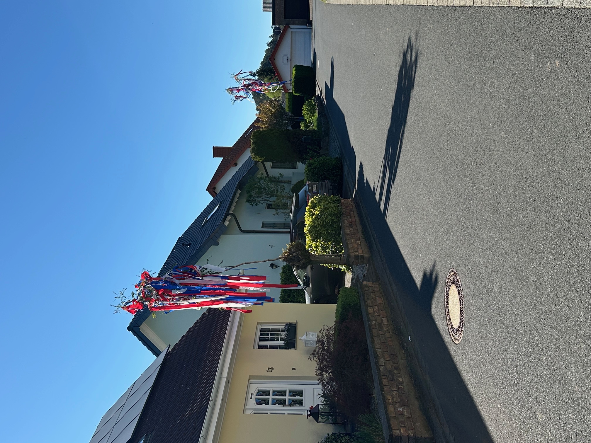 Besonders ins Auge fiel der Maibaum unseres diesjährigen Maikönigs Thomas Nöthen und seiner Maikönigin Annika Nattmann, der mit viel Liebe zum Detail gestaltet wurde und den Stolz des Paares sichtbar machte.
