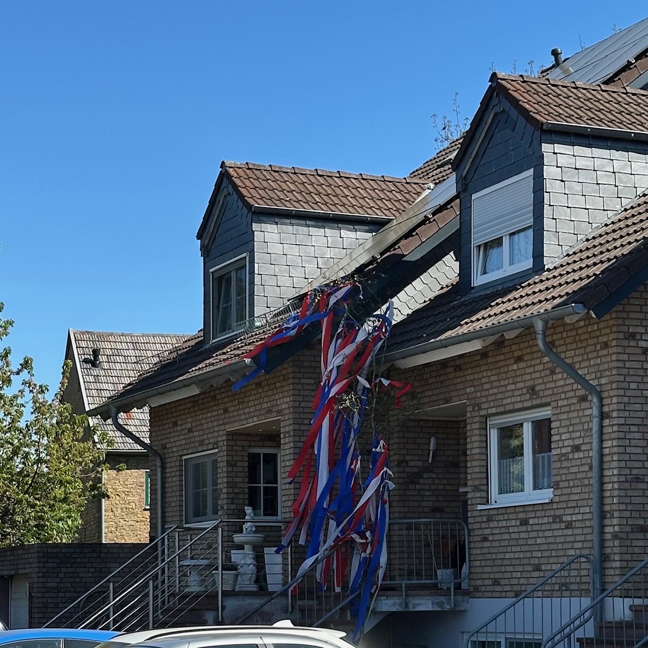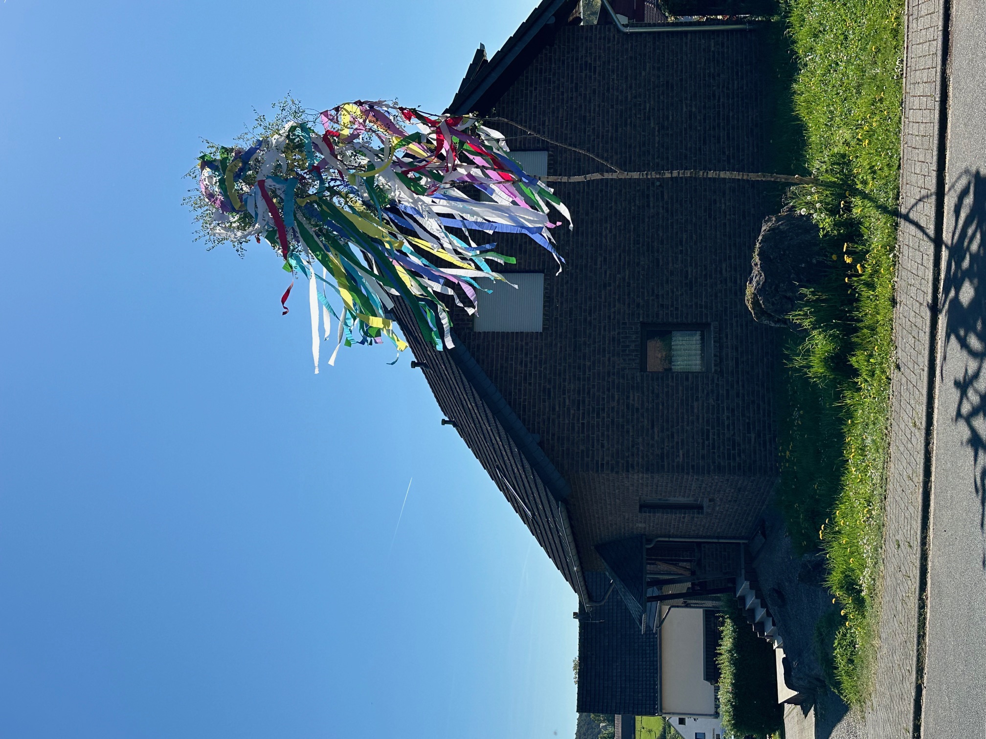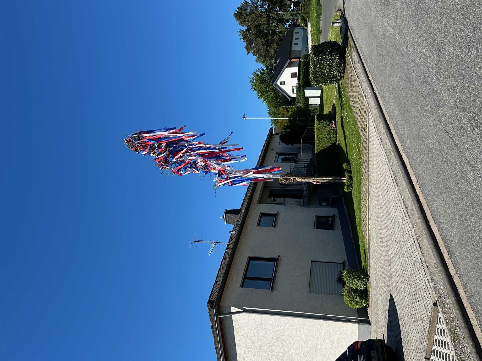 Wer heute einen Spaziergang durchs Dorf unternahm, wurde mit einem farbenfrohen Anblick belohnt: Überall in Weyer stehen geschmückte Maibäume, die in den traditionellen Farben des Ortes strahlen. Sie zeigen nicht nur die Verbundenheit mit der Heimat, sondern auch den Zusammenhalt im Ort und die Zuneigung der Maijungen zu ihren Maimädchen.