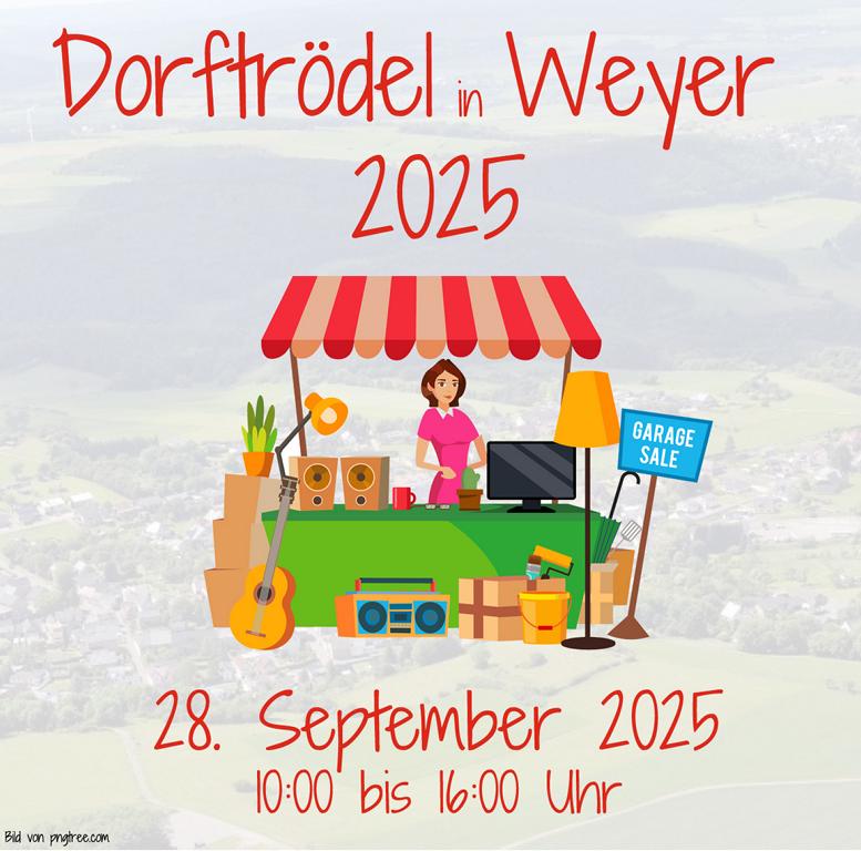 Wir hoffen auf strahlenden Sonnenschein und freuen uns, zahlreiche Besucher in Weyer begrüßen zu dürfen. Kommen Sie vorbei, entdecken Sie Schätze, genießen Sie Leckereien und erleben Sie einen besonderen Tag voller Begegnungen in unserem schönen Dorf.