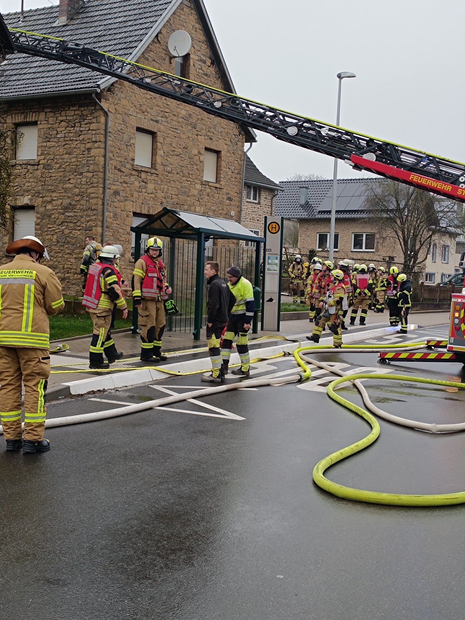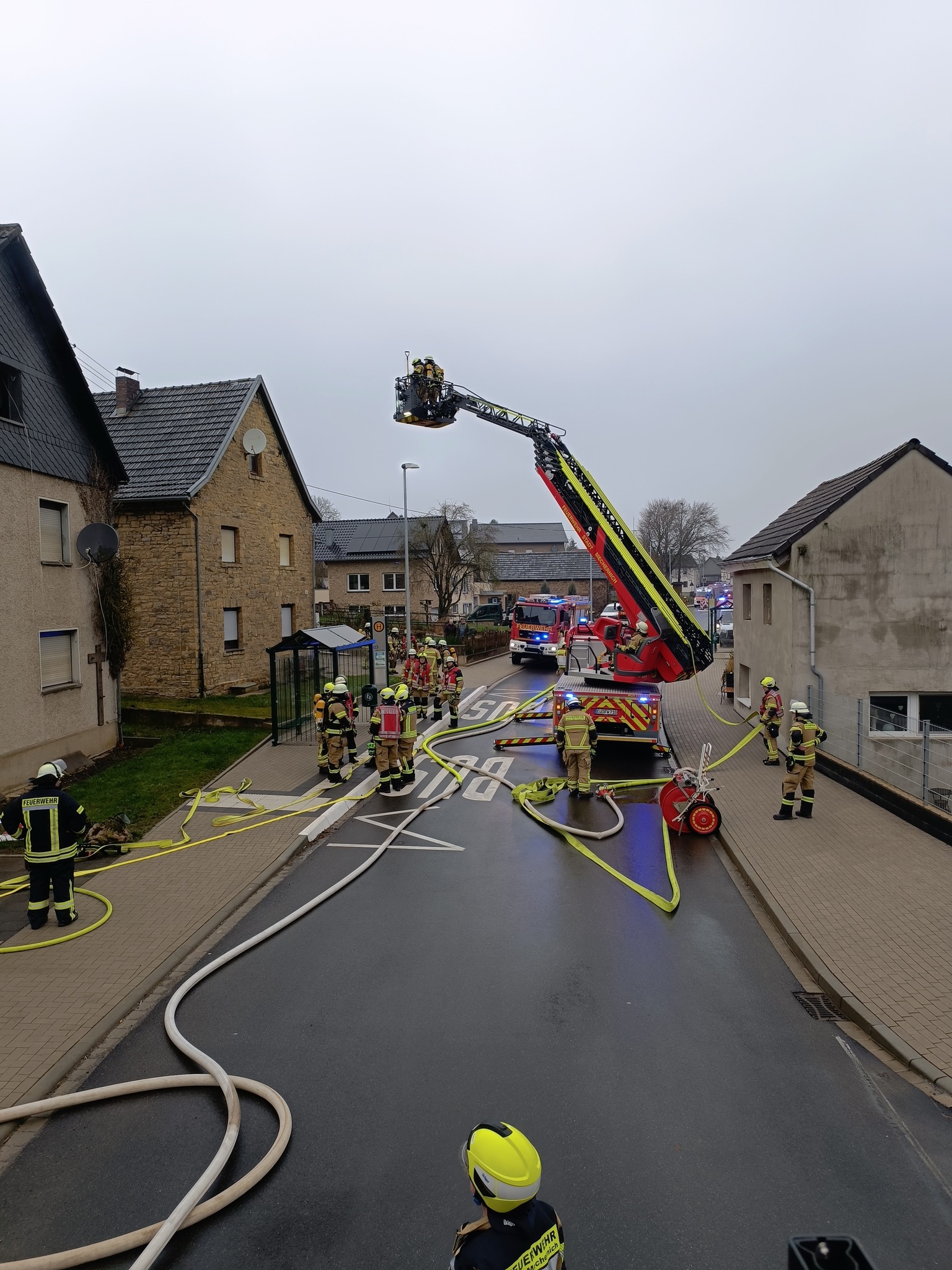 Unter der Leitung von Mario Wielspütz wurden weitere Atemschutztrupps nachgeführt, um den Brand im Innenangriff einzudämmen. Gleichzeitig wurde die Drehleiter aus Mechernich eingesetzt, um den Dachstuhl von außen mit einer Wärmebildkamera zu kontrollieren. Um versteckte Glutnester freizulegen, mussten Teile der Zwischendecke sowie Bereiche der Dachaußenhaut geöffnet werden. Durch das gezielte Vorgehen konnte das Feuer schnell unter Kontrolle gebracht werden.