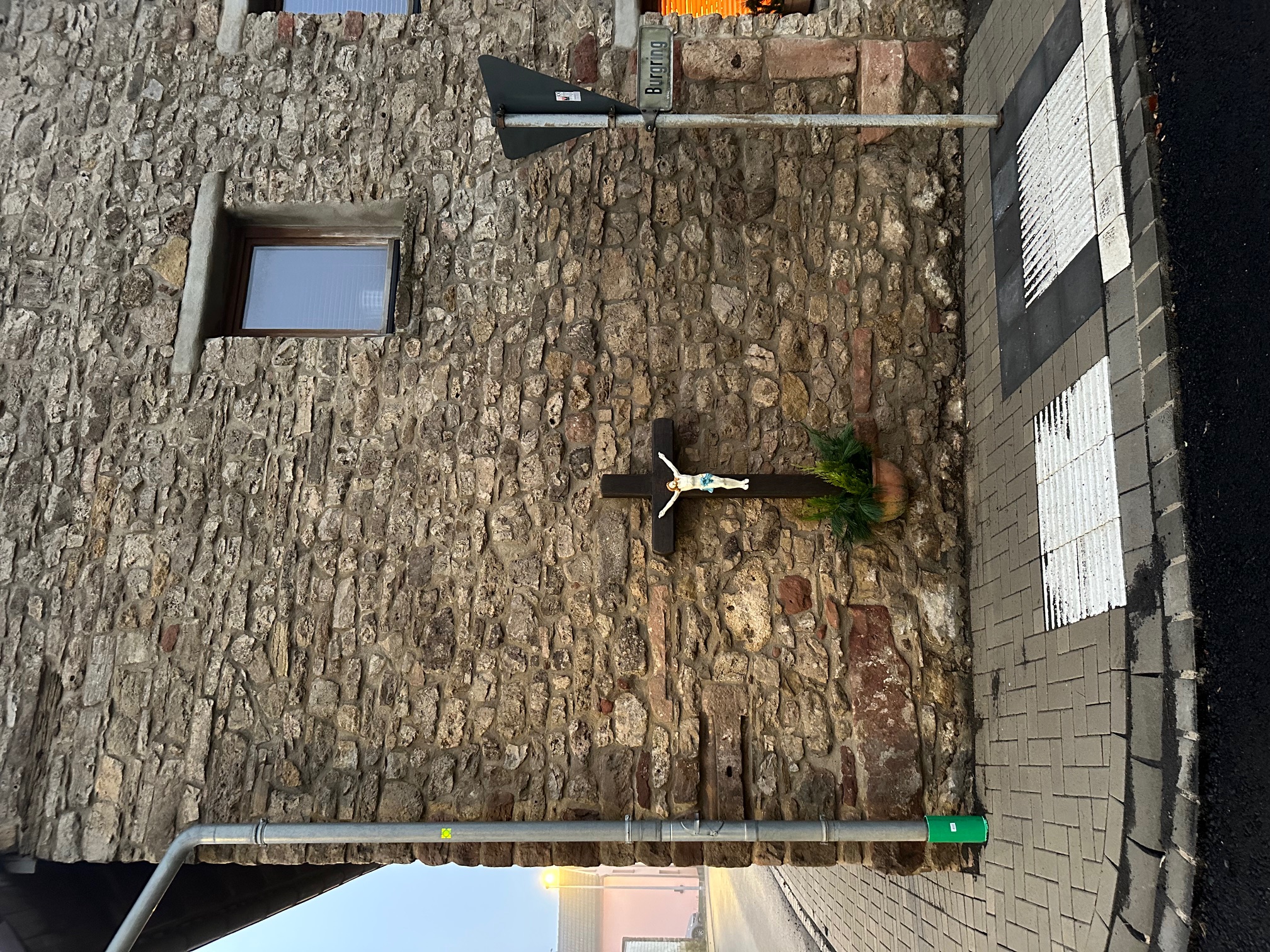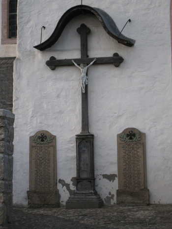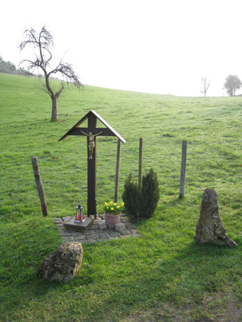 Am Ausgang des Ortes in Richtung Zingsheim steht ein Kreuz mit der Inschrift: „Befiehl dem Herrn deine Wege." Bei dem früheren schlechten Zustand der Straße war dies sicher eine berechtigte Mahnung.