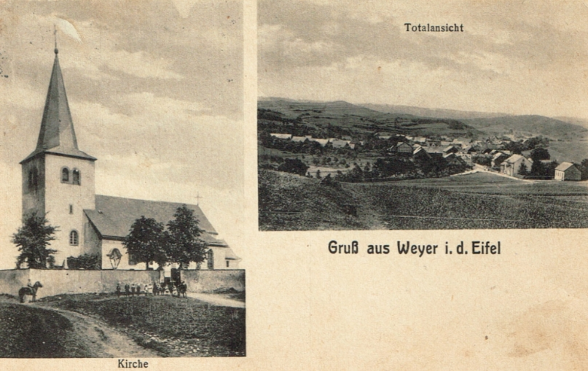 Die Fotografie wurde 1839 mit der Erfindung der Daguerreotypie geboren, doch erst durch die sogenannte „Kodak-Revolution“ ab 1888 wurde sie einem breiten Publikum zugänglich. In Weyer hielt die Fotografie erst im frühen 20. Jahrhundert Einzug, da die Verbreitung der Technik, insbesondere in ländlichen Regionen wie der Eifel, Zeit benötigte. Unsere Bildersammlung beginnt daher ab 1900, als erste Portrait- und Landschaftsaufnahmen in der Region entstanden.