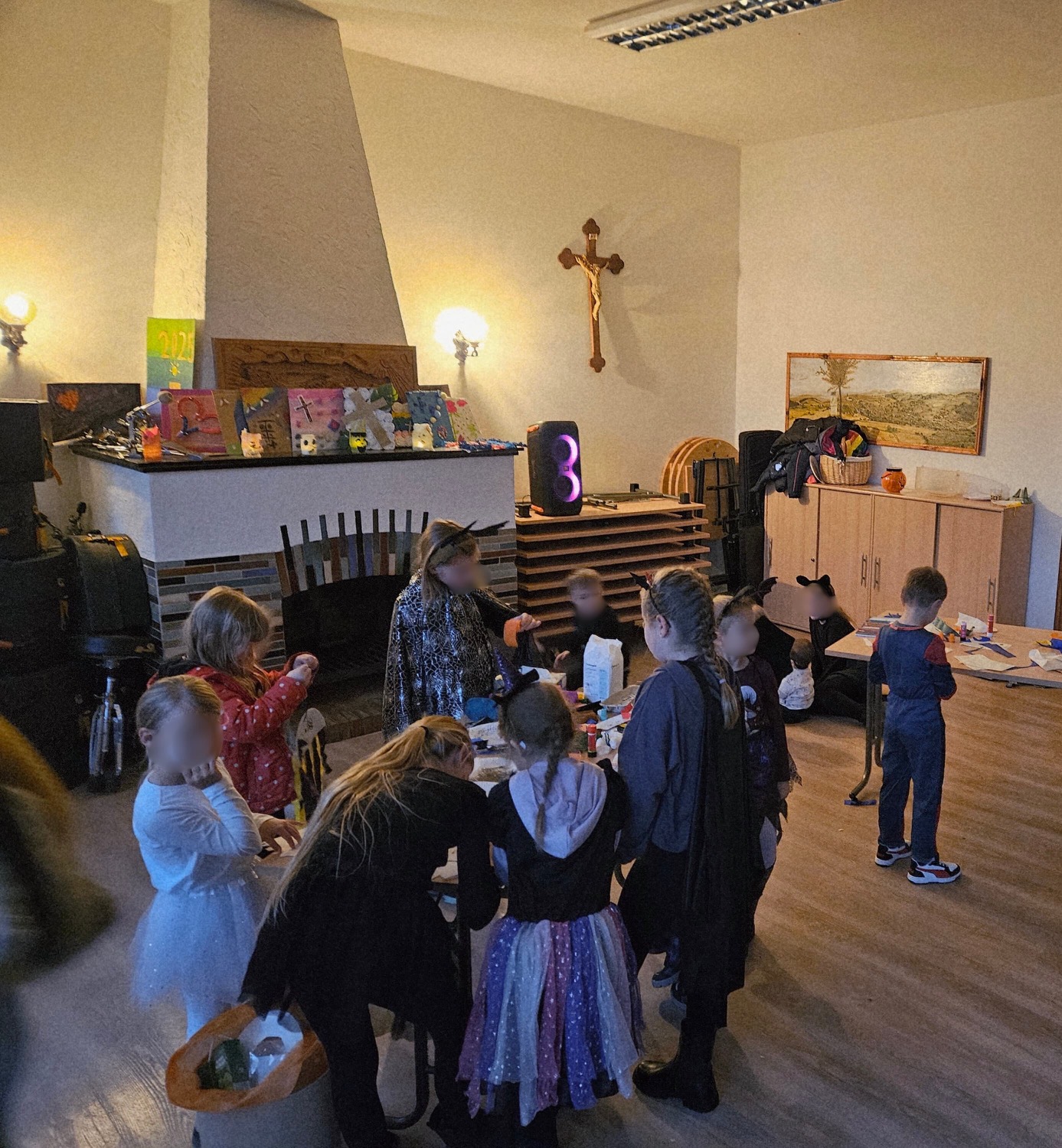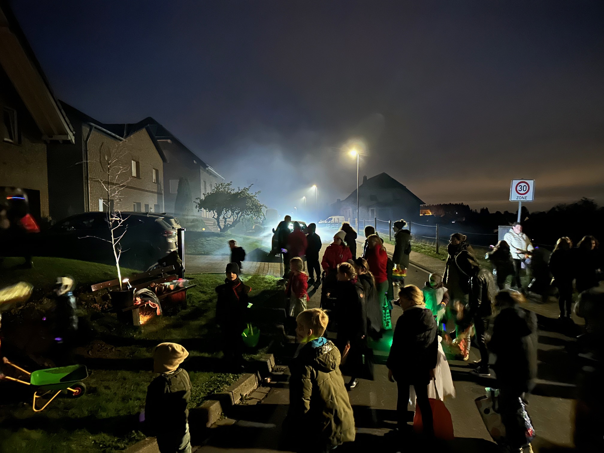 Um 15:30 Uhr trafen sich unsere kleinen Monster, Hexen und Gespenster zur Kinder-Halloween-Party im Jugendheim. Nach Spaß, Spielen und vielen Leckereien folgte um 18:00 Uhr die große Überraschung: Ein kleiner Zug aus verkleideten Kindern machte sich auf den Weg in den Neuer Weg, wo sie eine gruselig-schöne Kulisse mit Licht und mystisch-gruseligen Klängen erwartete. Nebelschwaden zogen durch die Straße, während die Kinder mit großen Augen den Platz erreichten.