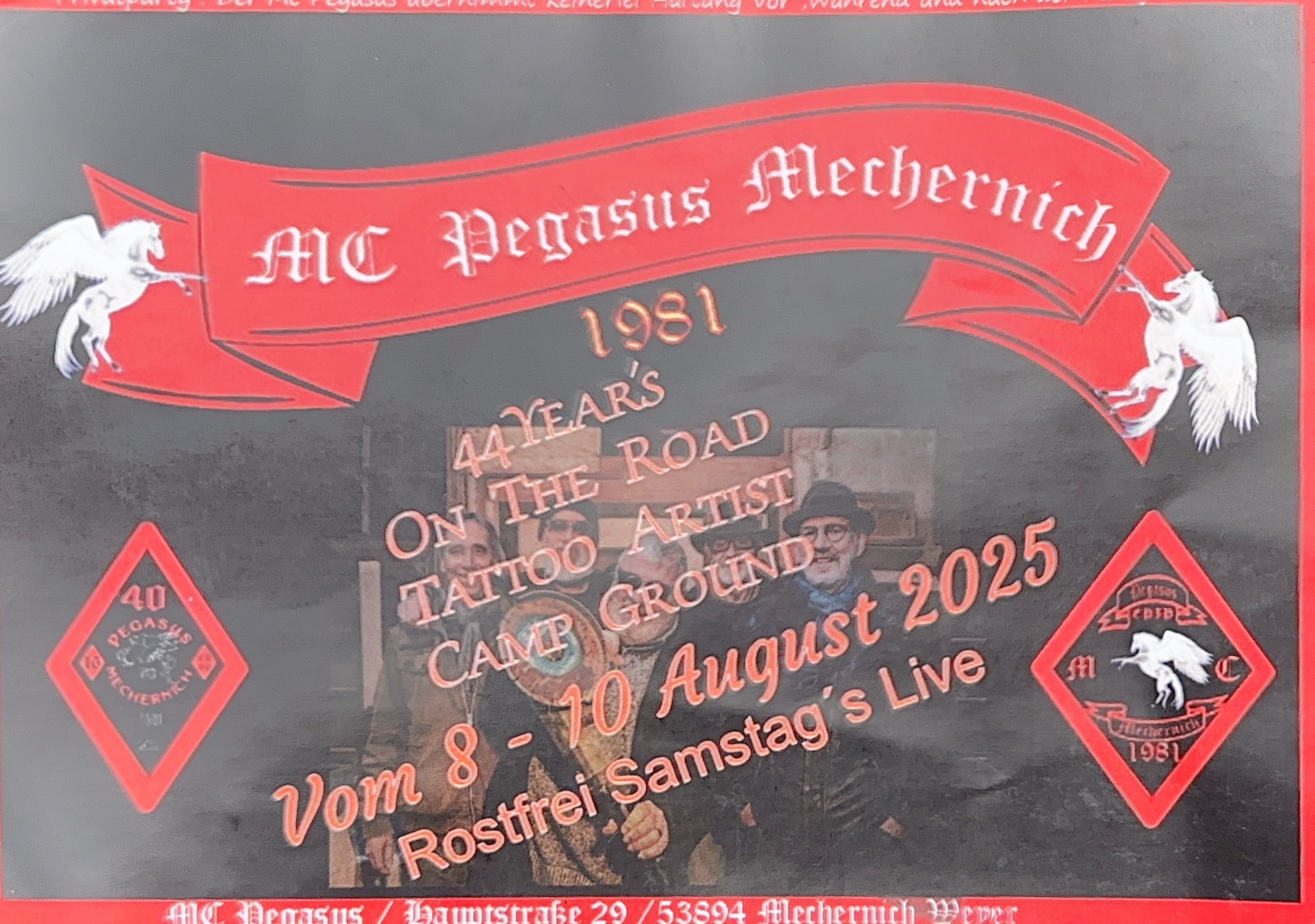 Gegründet im Jahr 1981, feiert der MC Pegasus Mechernich in diesem Jahr sein 44-jähriges Bestehen. Seit 2014 hat der Club in Weyer seine Heimat gefunden und die altehrwürdige Kneipe samt Dorfsaal bezogen.