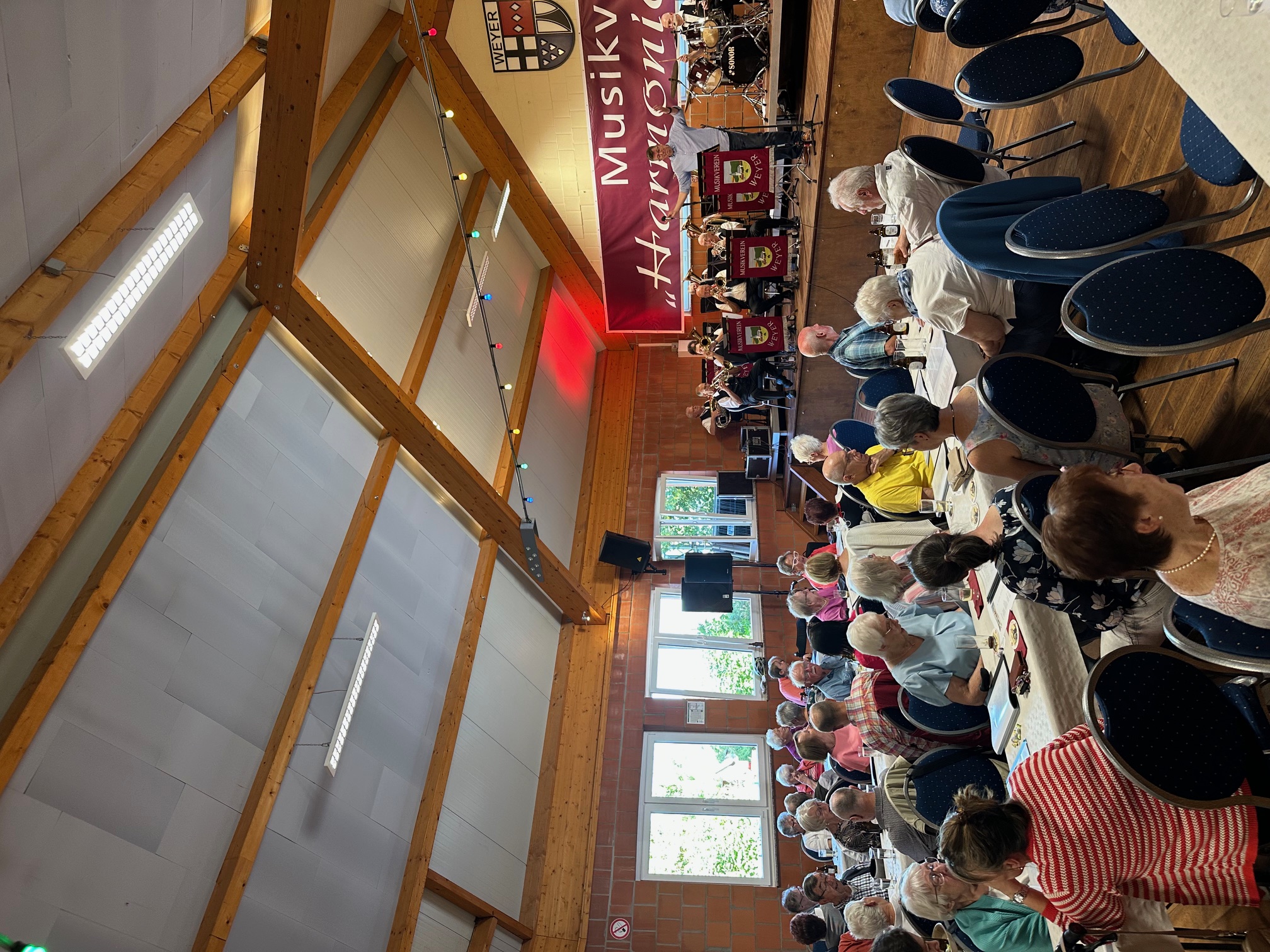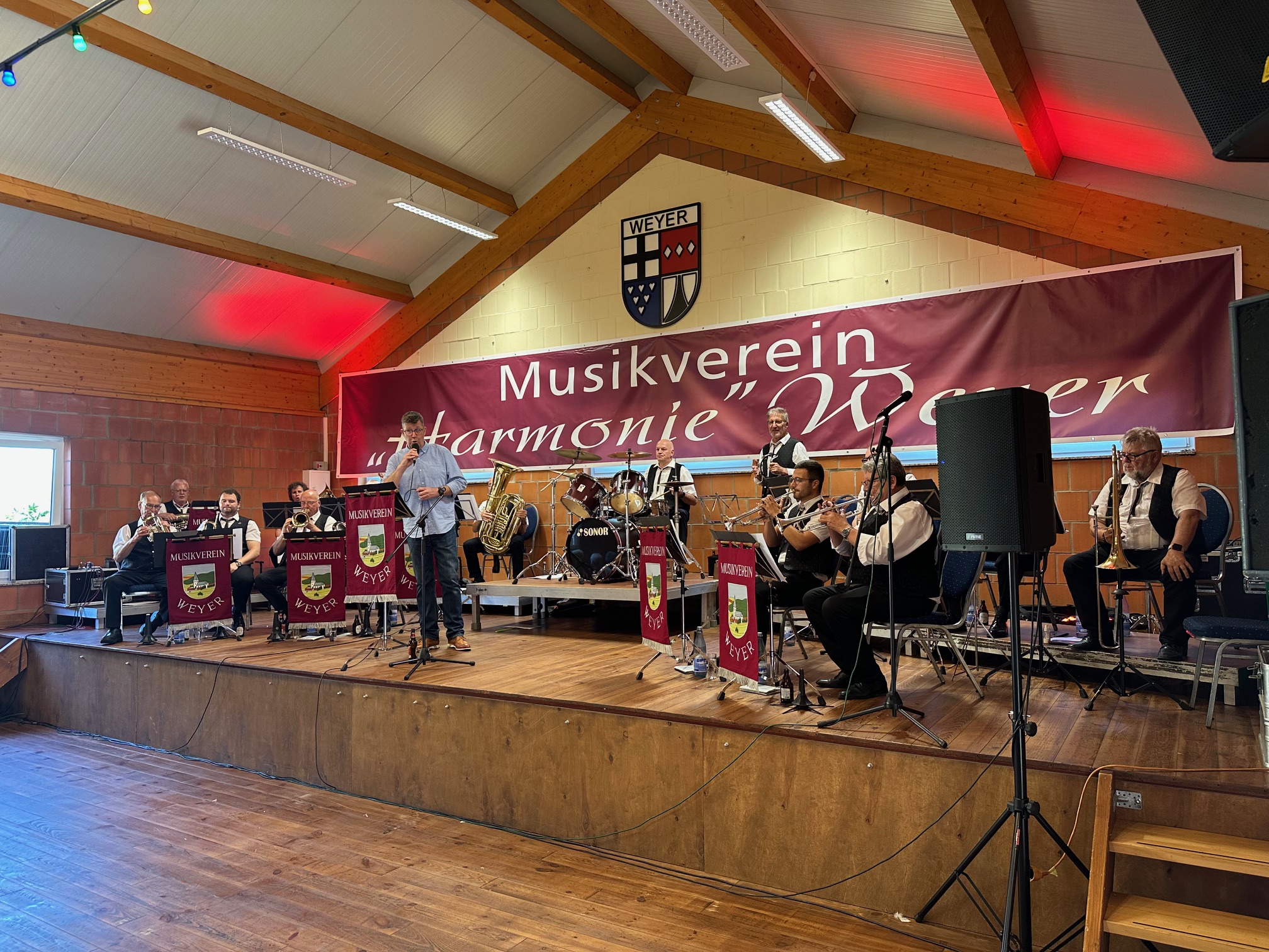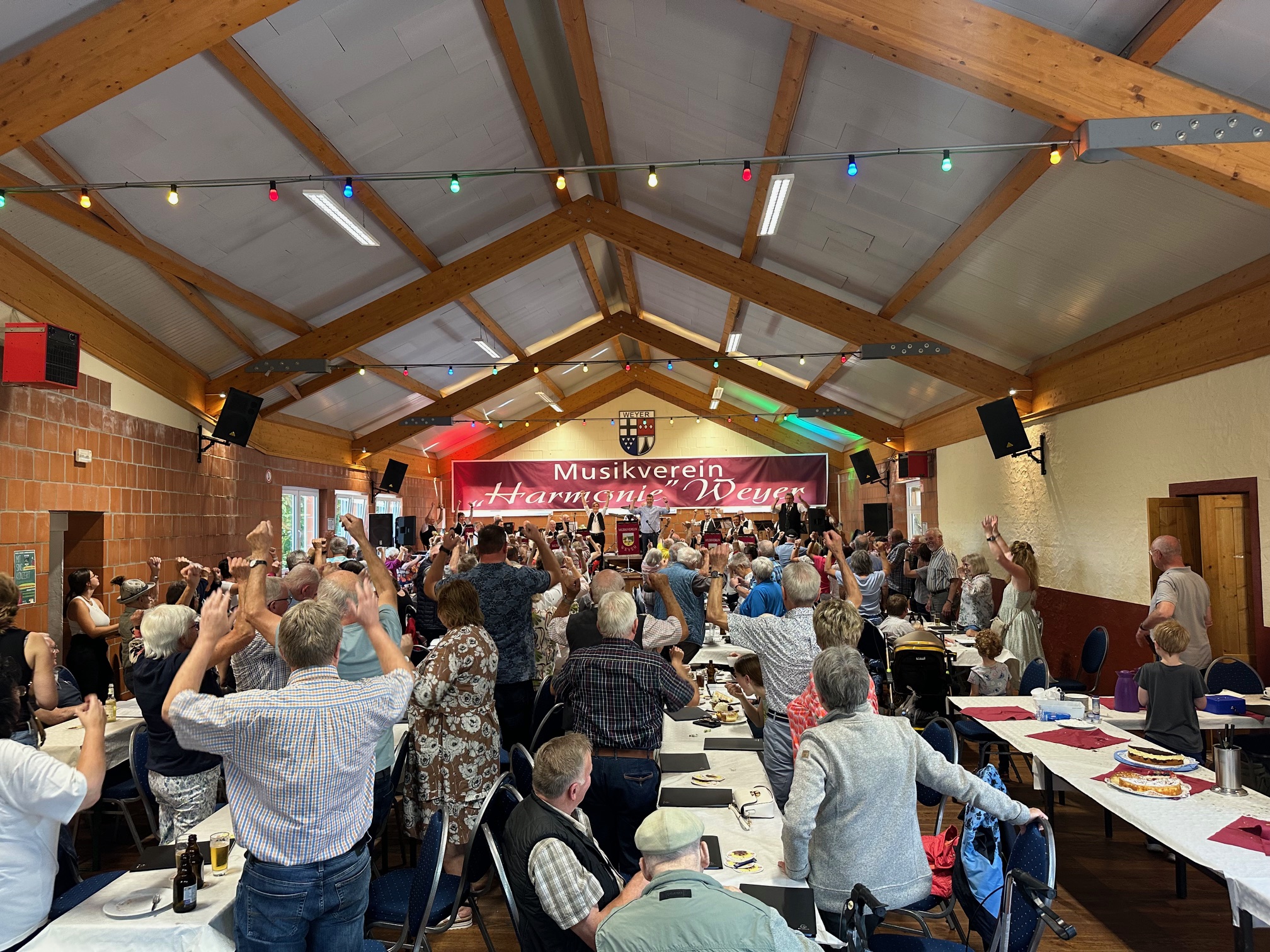 Am Sonntag, den 7. September 2025, verwandelte sich die Bürgerhalle Weyer in einen Ort voller Musik, Begegnung und Lebensfreude. Der Musikverein „Harmonie“ Weyer hatte zum großen Mitsingkonzert eingeladen – und die Resonanz war überwältigend. Schon früh war die Halle bis auf den letzten Platz gefüllt, mehrfach mussten Tische und Stühle nachgestellt werden, um allen Sängerinnen und Sängern einen Platz zu bieten.