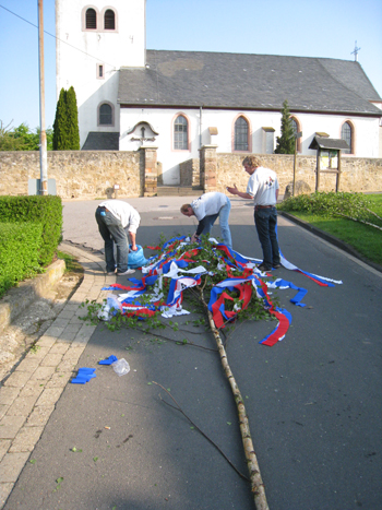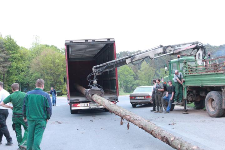 Im Abstand von einigen Jahren muss der Stamm für den Maibaum in Weyer auswechselt werden.