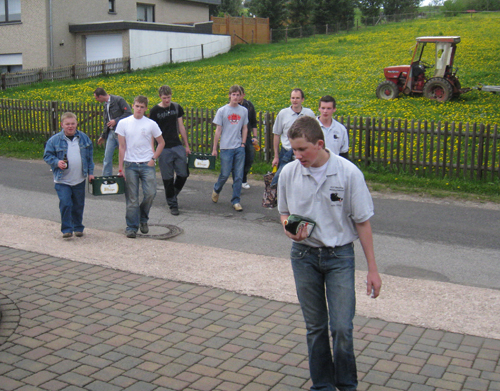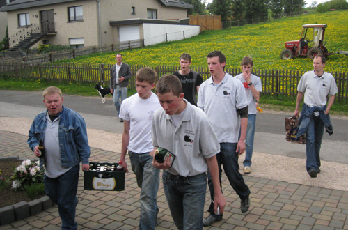 Und diese Entspannung finden die Junggesellen auf dem Dorfplatz. Hier wird nach und während der Arbeiten einmal ein frisches Stubi genossen und ein lecker Kottlet gegessen. Auch wenn der Alkohol nicht von den Junggesellen wegzudenken ist, so wird dennoch kein Missbrauch damit betrieben.
