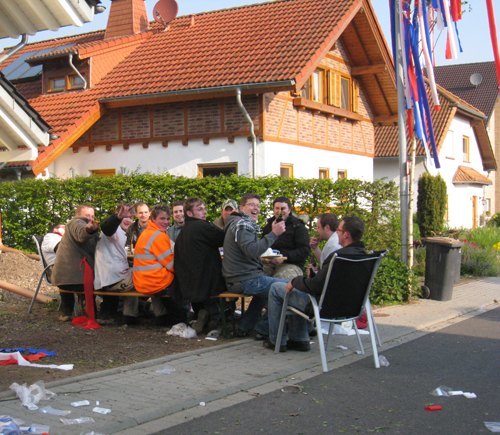Ebenfalls werden die Hausbesitzer auf einen "kurzen" eingeladen. Sowie auf den kommenden Umtrunk in der Mainacht auf dem Dorfplatz.