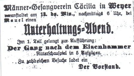 Männergesangverein „Cacilia", gegründet 1877. Letzte Erwähnung des ehemals sehr aktiven Vereins 1976.