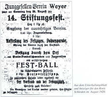 Wanderklub Weyer, begeht 1920 sein erstes Stiftungsfest, danach keine Erwähnung mehr.