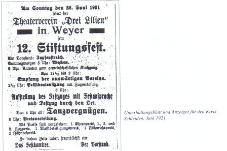 Tambourkorps Weyer, ladet 1921 zum Wettstreit ein. danach keine Erwähnung mehr.