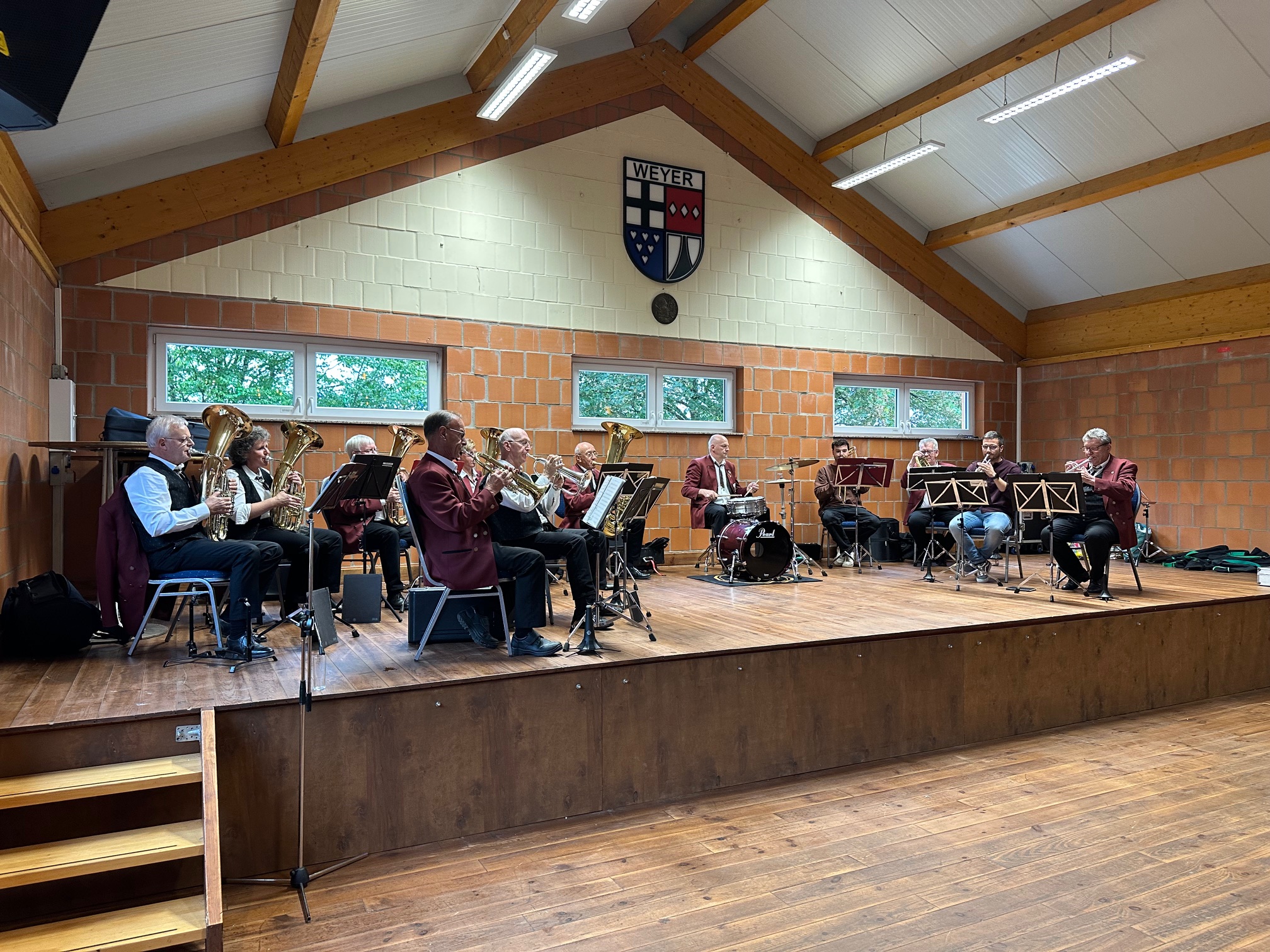 Ein weiteres Highlight war der Auftritt des Musikvereins Harmonie Weyer. Die heimischen Klänge weckten bei vielen Gästen Erinnerungen und sorgten für eine besondere Stimmung in der Bürgerhalle.