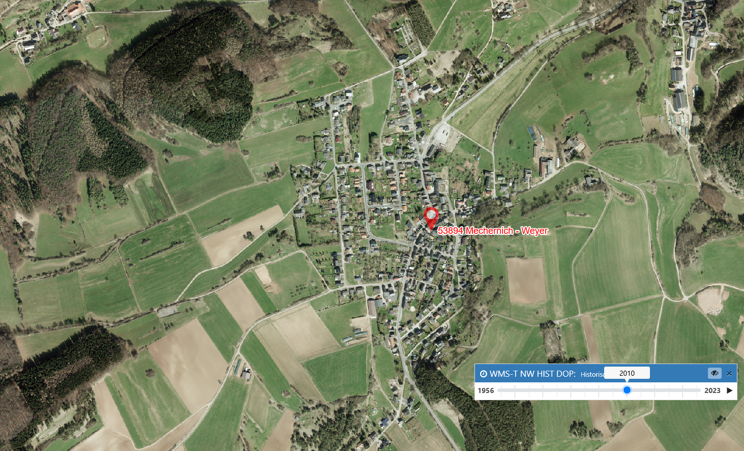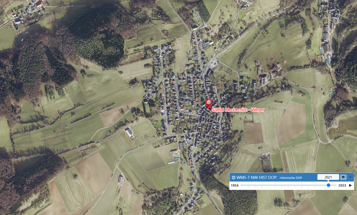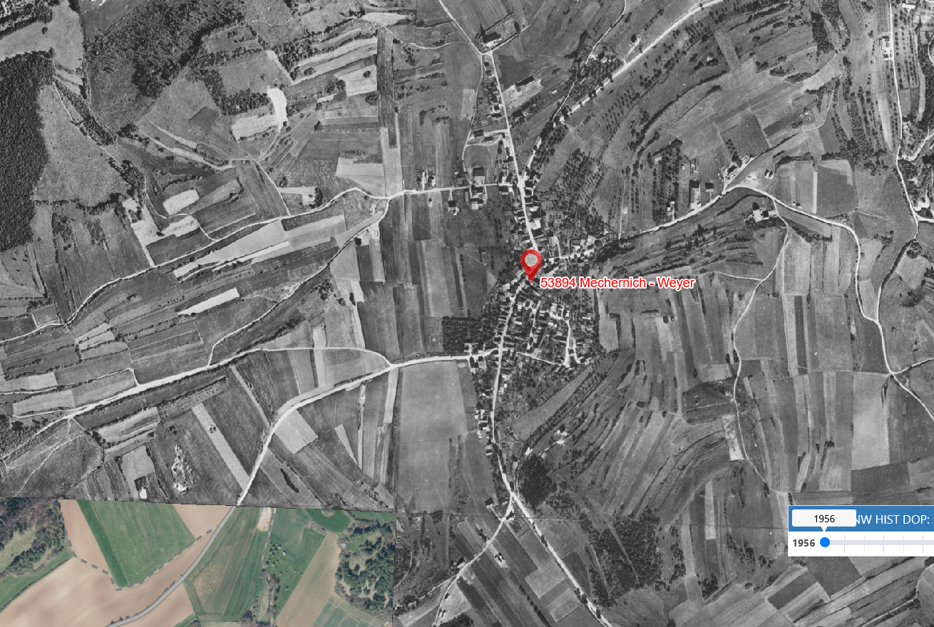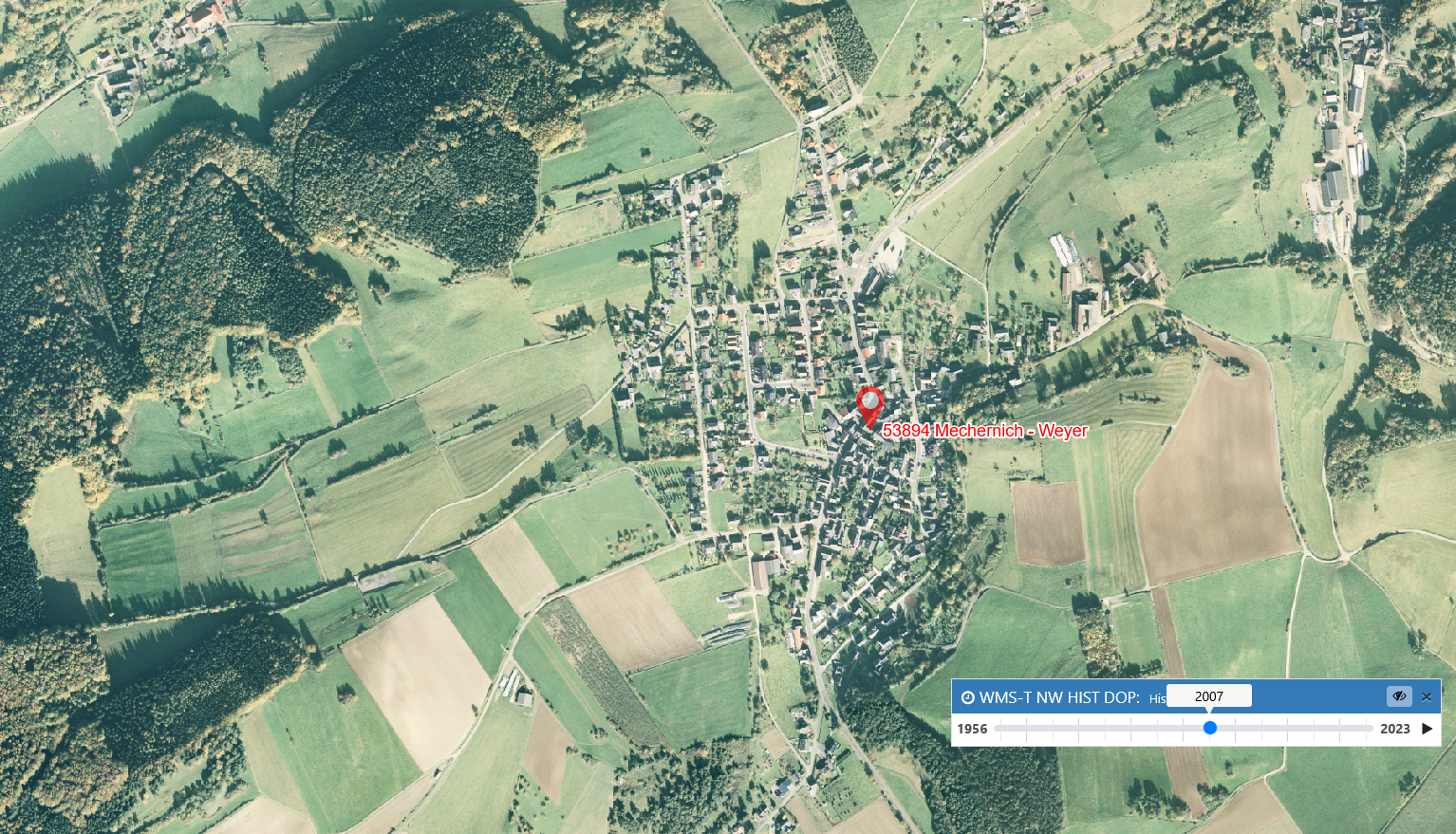Wir wollen heute einmal aus der Vogelperspektive einen Blick auf Weyer werfen. Luft- und Satellitenaufnahmen sind ein beeindruckendes Zeugnis dafür, wie lebendig sich Orte entwickeln können. Anhand von 14 Bildern, die die Jahre von 1956 bis heute abdecken, lässt sich die Geschichte Weyers nachzeichnen – eine Geschichte von stetigem Wachstum, geschlossenen Baulücken und dem Wunsch nach Perspektiven für die Zukunft.
