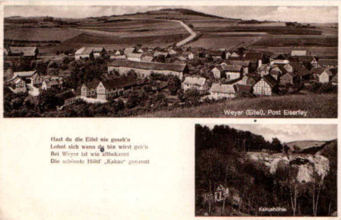 Zwei Eifelschleifen, eine Eifelspur und der Ahr-Urft-Weg führen durch Weyer. Sollten Sie ein wenig Zeit haben, nutzen Sie doch die Gelegenheit und erleben Sie auf einer kurzen Zwischenetappe den Weyerer Geschichtspfad oder die Kinder Erlebniswanderung -Kelten-Römer-Ritter bevor Sie Ihre offizielle Wanderung fortführen.