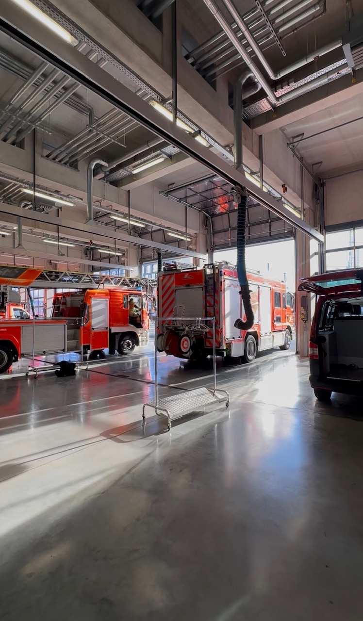 Besonders beeindruckend war das zweistöckige Zentrallager, in dem unter anderem Hunderte unterschiedliche Sanitätsmittel wie Beatmungsgeräte und Defibrillatoren lagern, sowie ein Bereich mit rund 1.000 Artikeln von Motorsägen über Strahlrohre bis zu Reifen und Auspuffen. Auch die großdimensionierte Werkstatt, in der selbst Drehleitern gewartet werden können, die Atemschutzwerkstatt, Schlauchwerkstatt und die umfangreiche Kleiderkammer für die mehr als 3.000 Mitglieder der Berufs- und Freiwilligen Feuerwehren beeindruckten sehr.