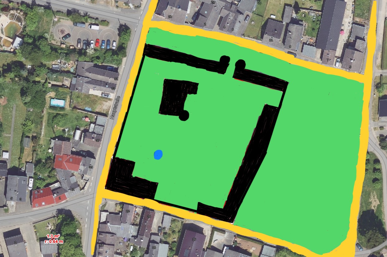 - Wandseite Richtung Pützend: Ein Parzellen Abschnitt von etwa 498 m² könnte noch originale Mauerteile enthalten.
