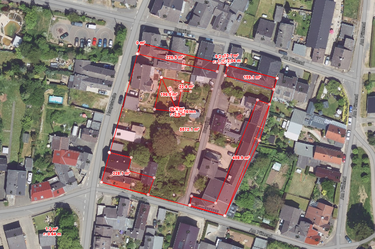 - Eingangsbereich am Burgring/Pützend: Zwischen den heute als 226 m² und 159 m² großen Parzellen markierten Bereichen könnten sich ebenfalls Überreste des originalen Burgzugangs befinden.
