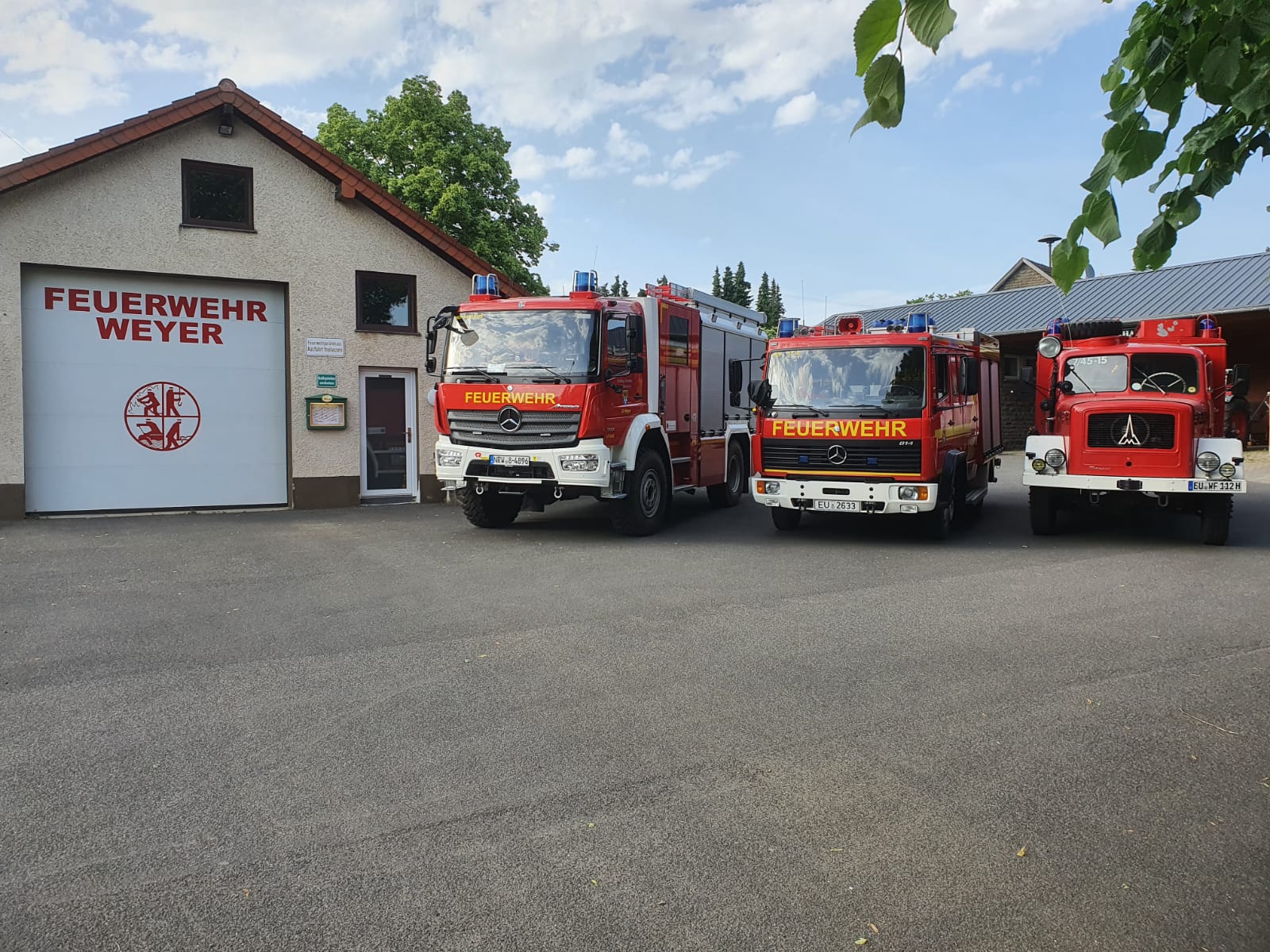 Ein Highlight war die Anschaffung eines Tragkraftspritzenfahrzeugs (TSF) auf einem Unimog im Jahr 1983, das vom Technischen Hilfswerk übernommen wurde. Dieses Fahrzeug diente der Wehr viele Jahre lang als verlässliches Einsatzmittel. Besonders bekannt ist eine Episode aus dem Jahr 1991: Als der Unimog aus Weyer abgezogen werden sollte, verhinderte der damalige Ortsvorsteher Peter Wassong dies durch entschlossenes Handeln – ein symbolträchtiger Moment für die Wehr.