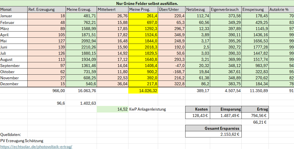 Überschuss: 11.300 kWh Einspeisung